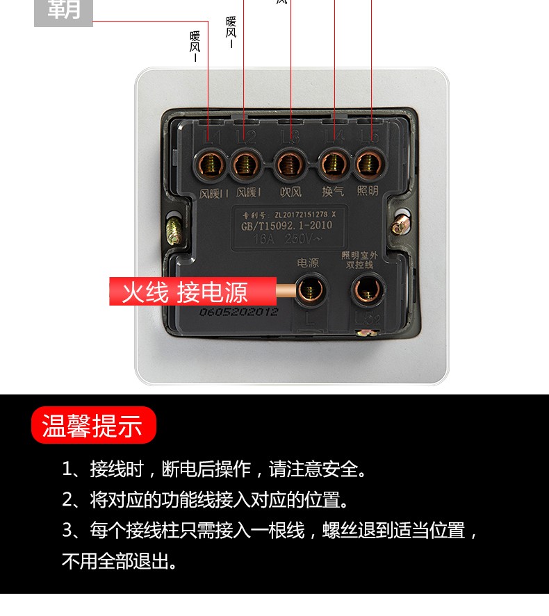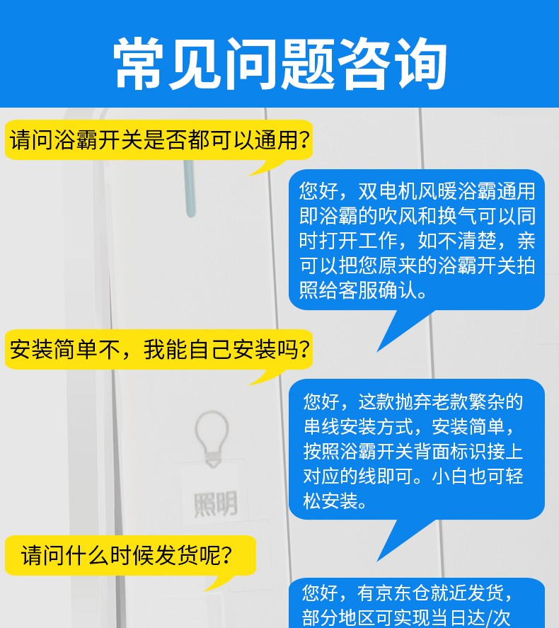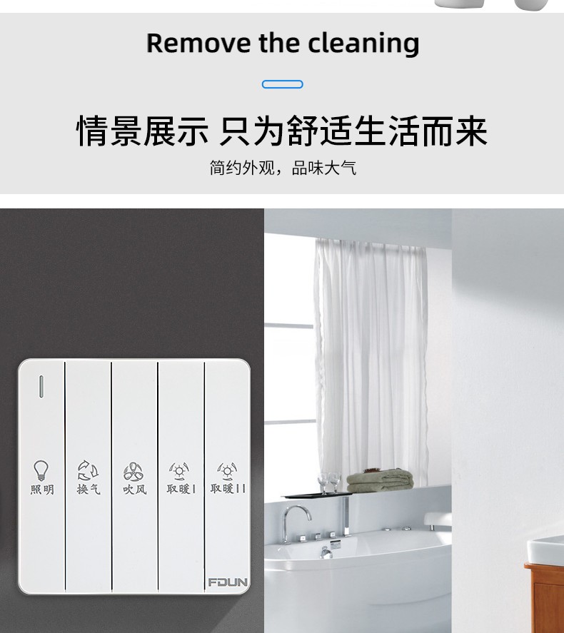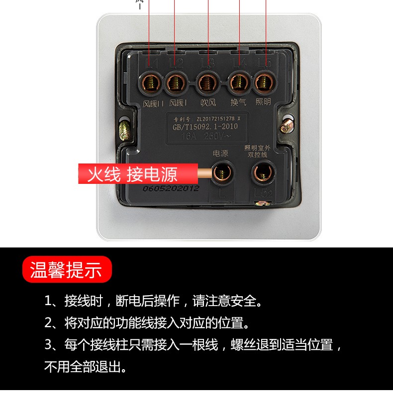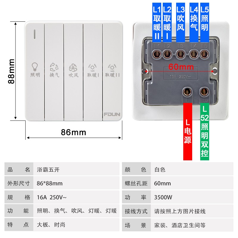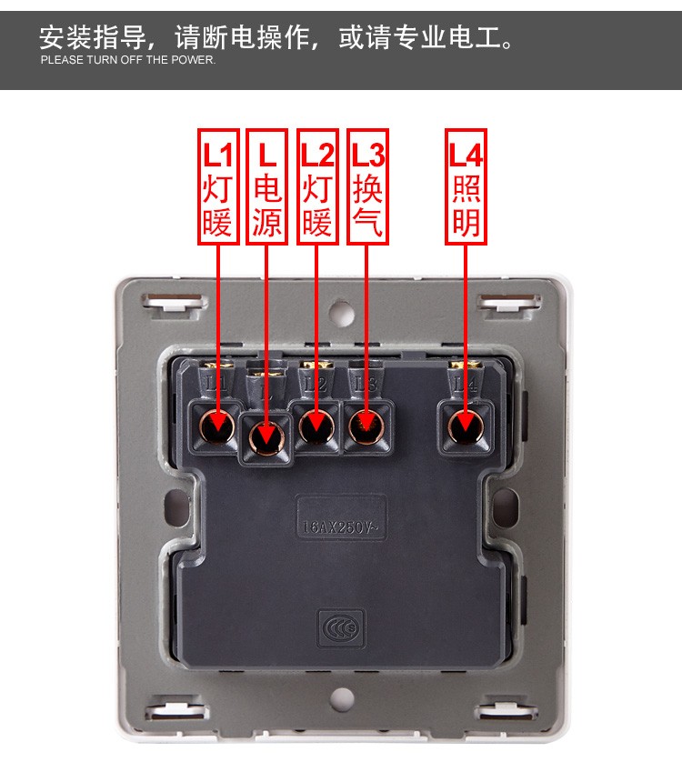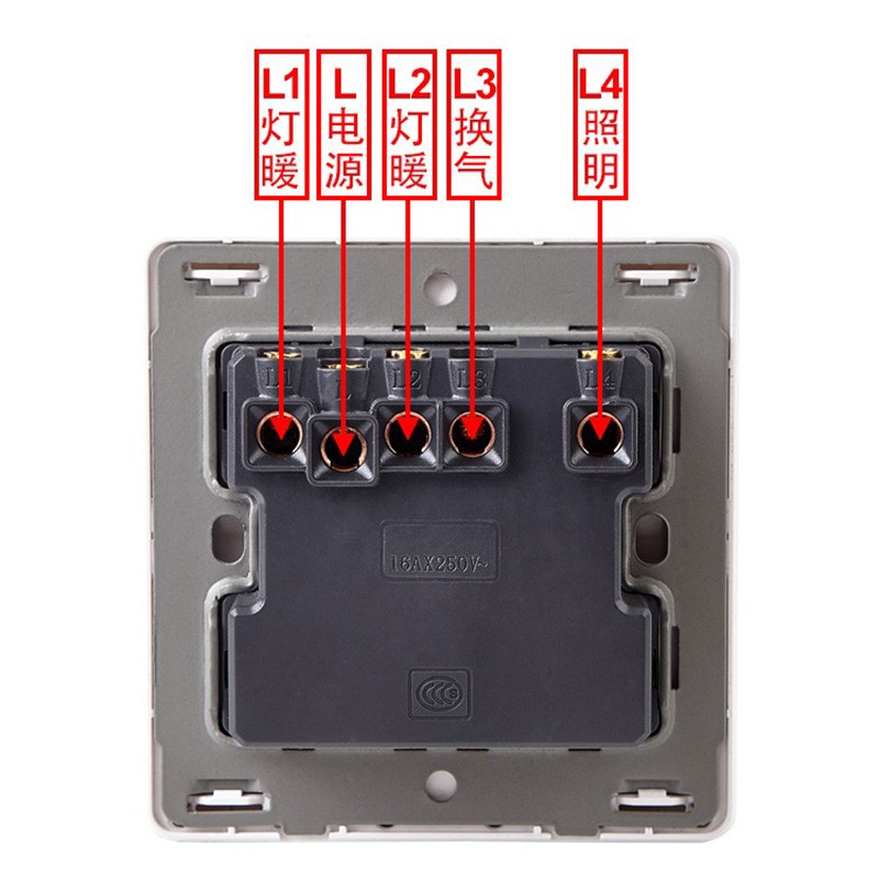商品名称: 格盾 86型 16A 时尚四开带防水盒大功率浴霸开关 白色(单位:套)