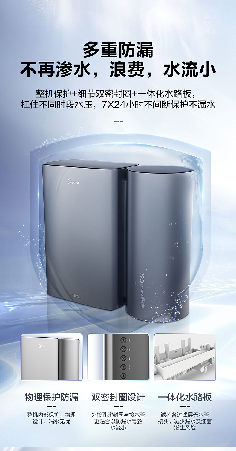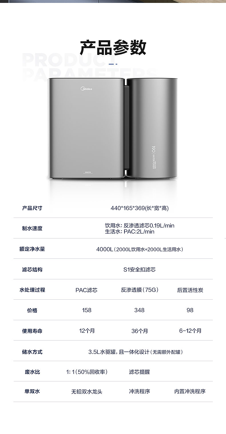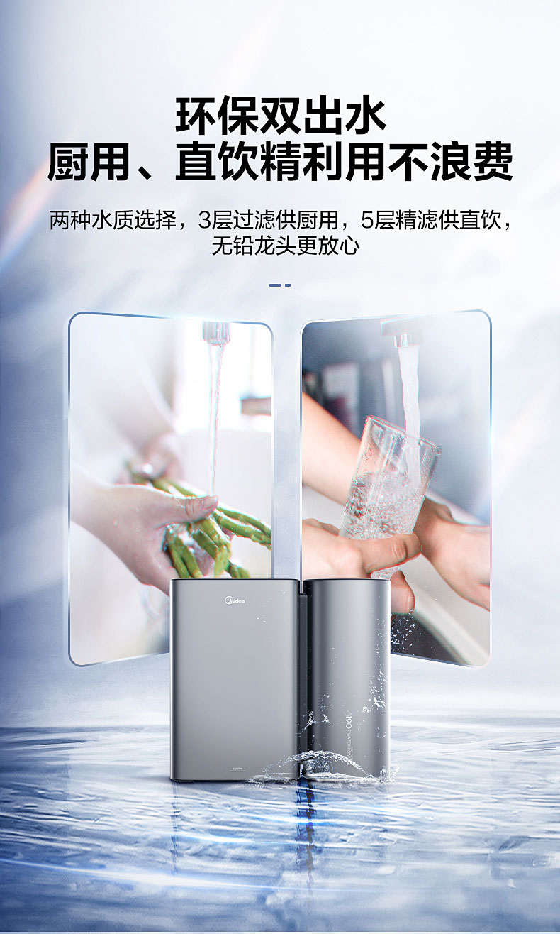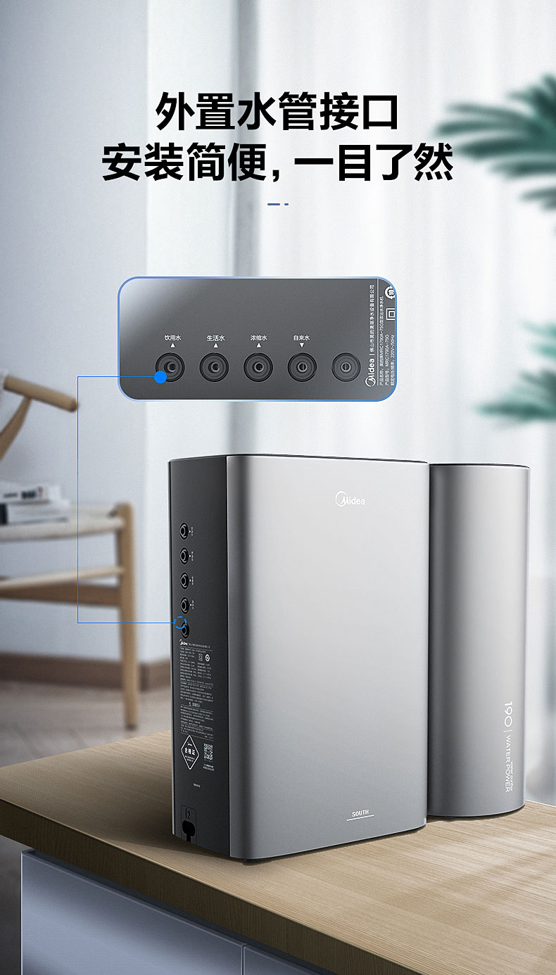 • 商品名称:美的(Midea)MRC1790A-75G 家用厨房净水器直饮无罐一体机 二代水驱超静音 双出水净水机 (单位:台)