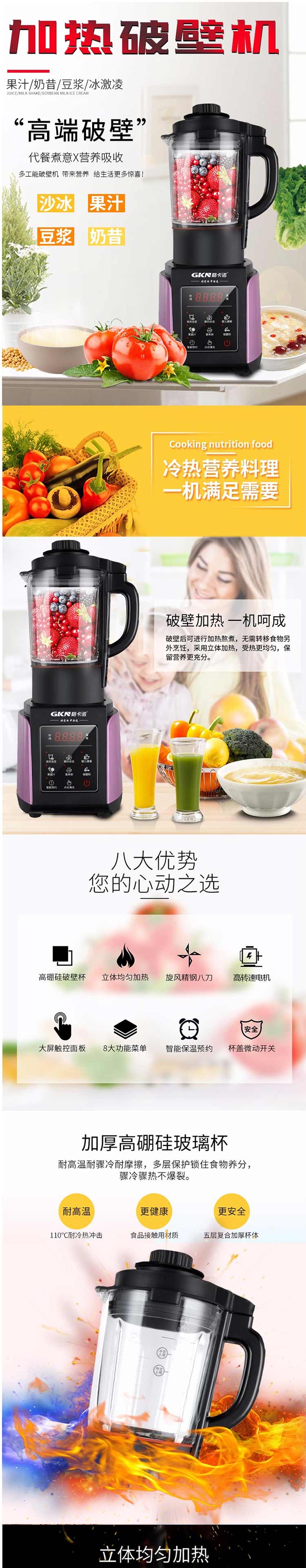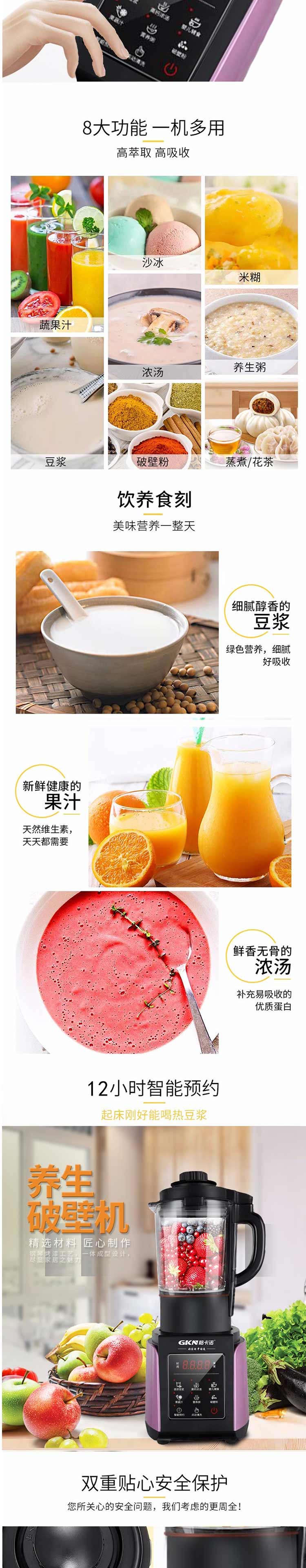 商品名称: 格卡诺 GKN-PBJ-02 1.75L破壁机 智能预约加热多功能料理机 黑、棕(单位:台)