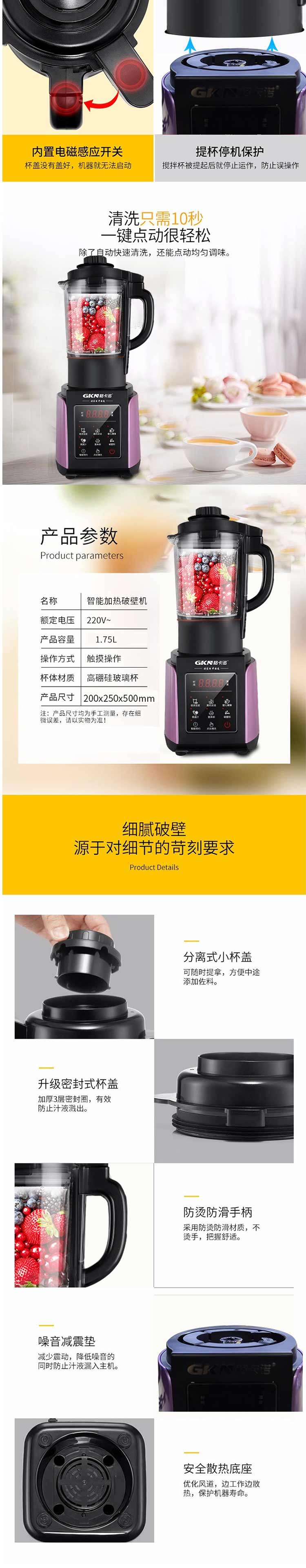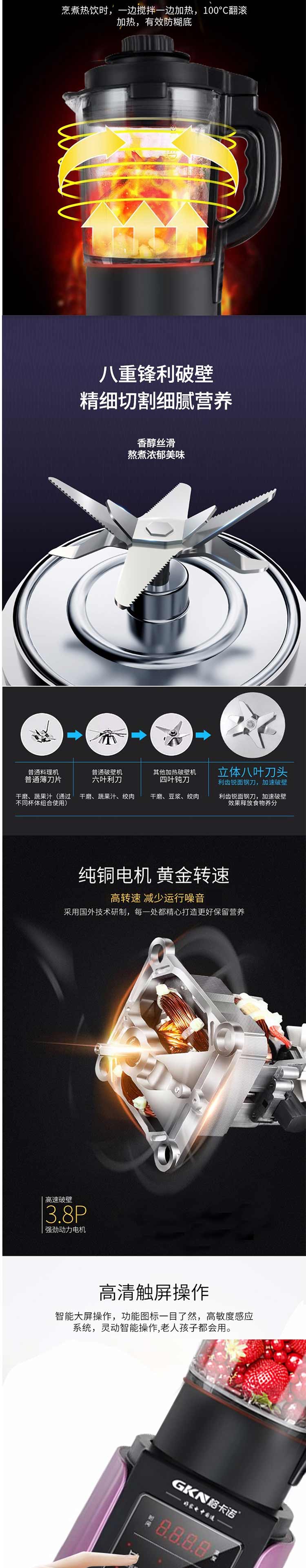 • 商品名称:格卡诺 GKN-PBJ-02 1.75L破壁机 智能预约加热多功能料理机 黑、棕(单位:台)