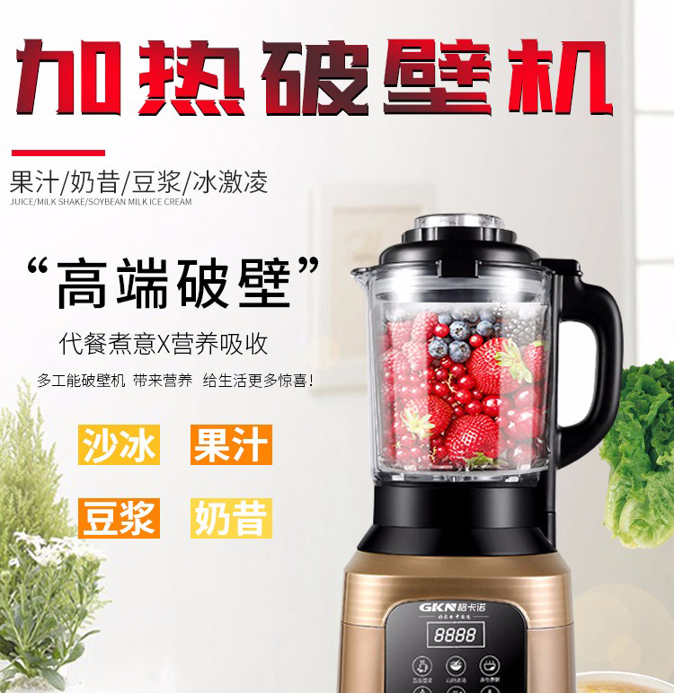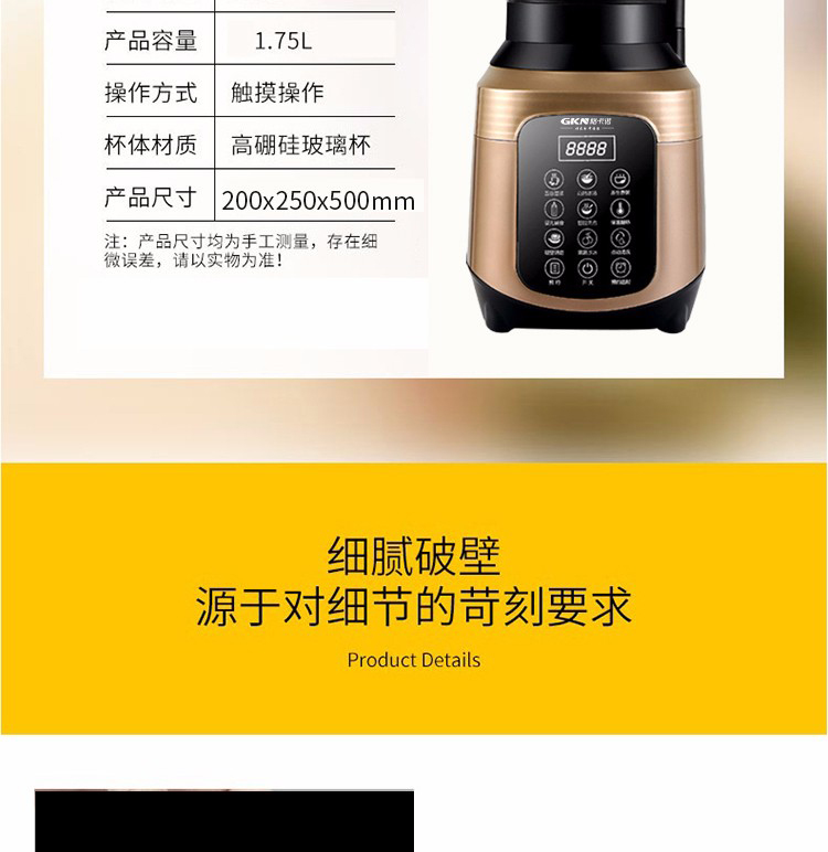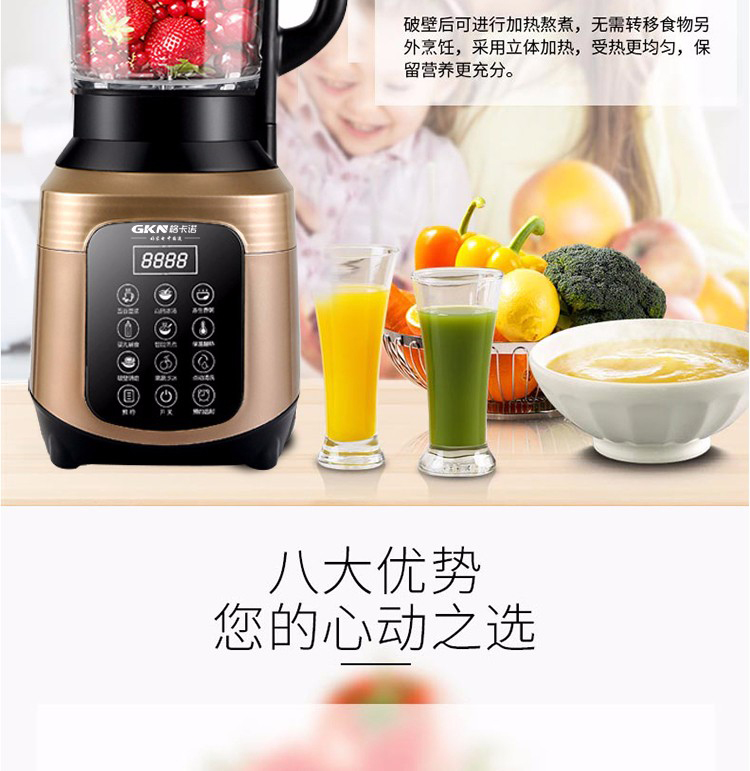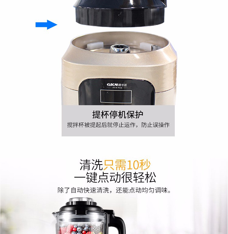 • 商品名称:格卡诺 GKN-PBJ-03 1.75L破壁机 智能加热多功能料理机 黑、金(单位:台)