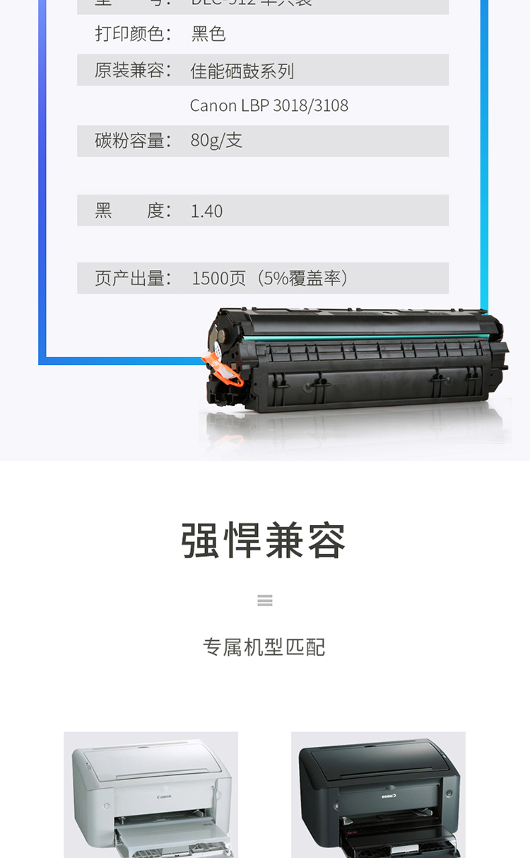 • 商品名称:得力/deli DLC-912 硒鼓 激光打印机(适用佳能Canon LBP 3018/3108) 黑色