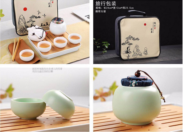 • 商品名称:茶香 1茶壶 4杯子 1茶叶罐 6头定窑旅行茶具 (单位:套)