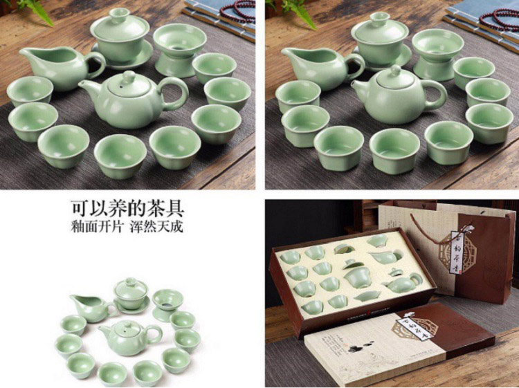 • 商品名称:茶香 1茶壶 1盖碗 1茶海 8杯子 1手托 1过滤 13头汝瓷 (单位:套)