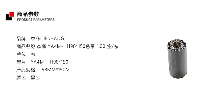 商品名称: 杰商(JIESHANG) YA4M-HH98*150 98MM*150M 色带 1.00 盒/卷 (计价单位:卷) 黑色
