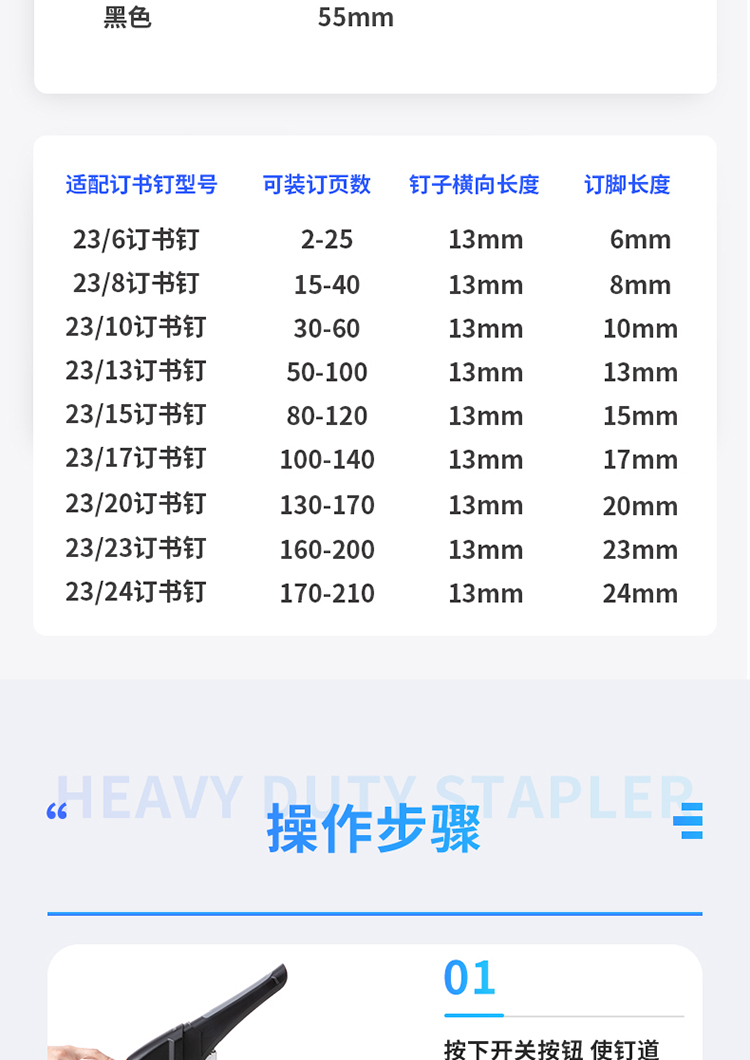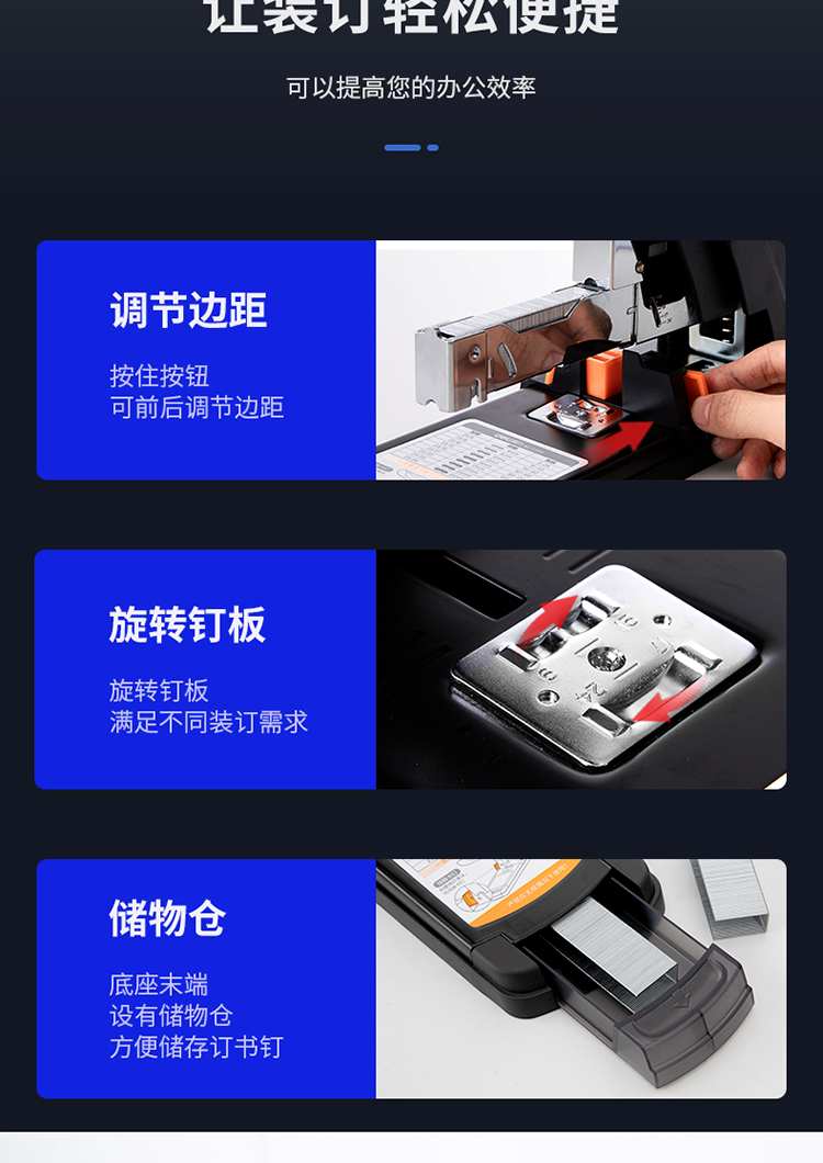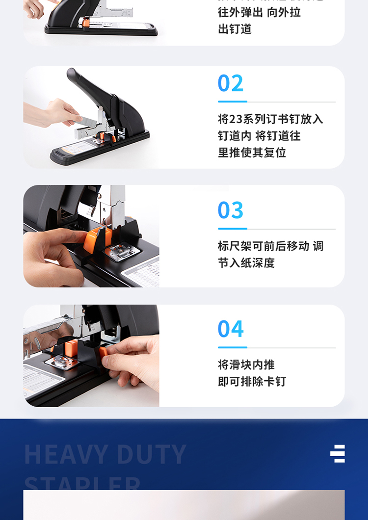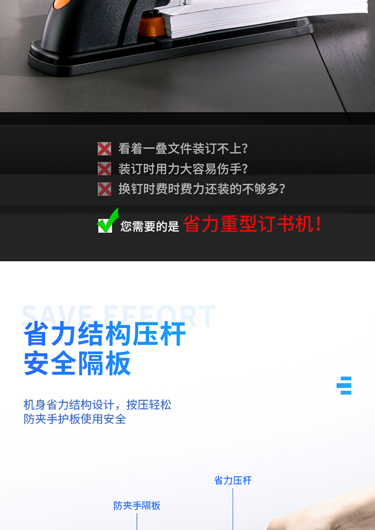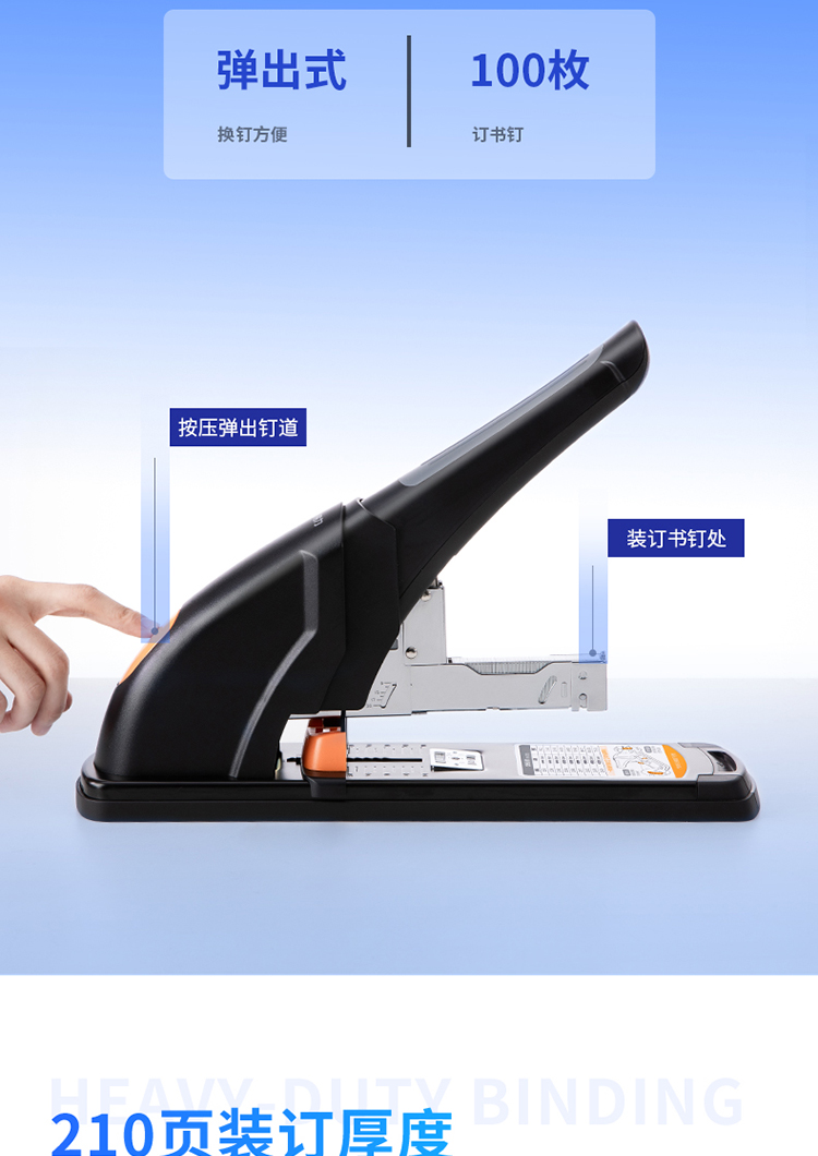 商品名称: 得力/deli 0385 订书机 210页省力重型 黑色