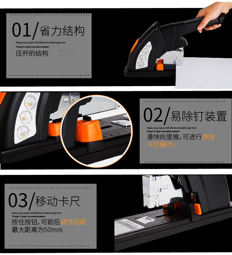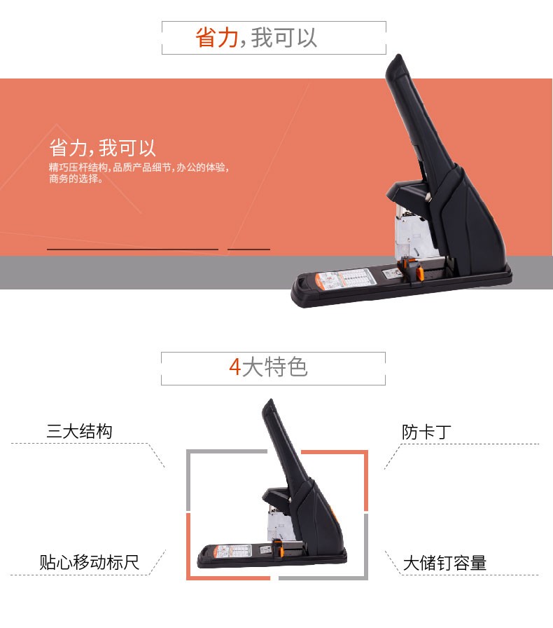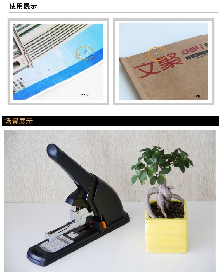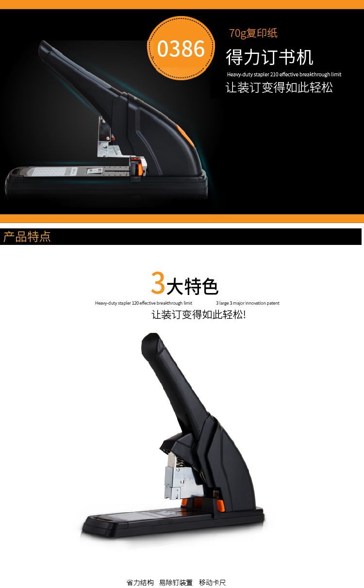 • 商品名称:得力/deli 0386 订书机 120页省力重型 黑色