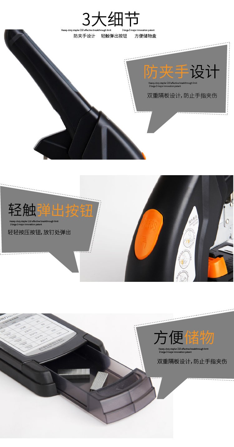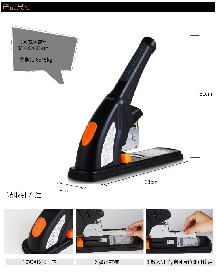 商品名称: 得力/deli 0386 订书机 120页省力重型 黑色