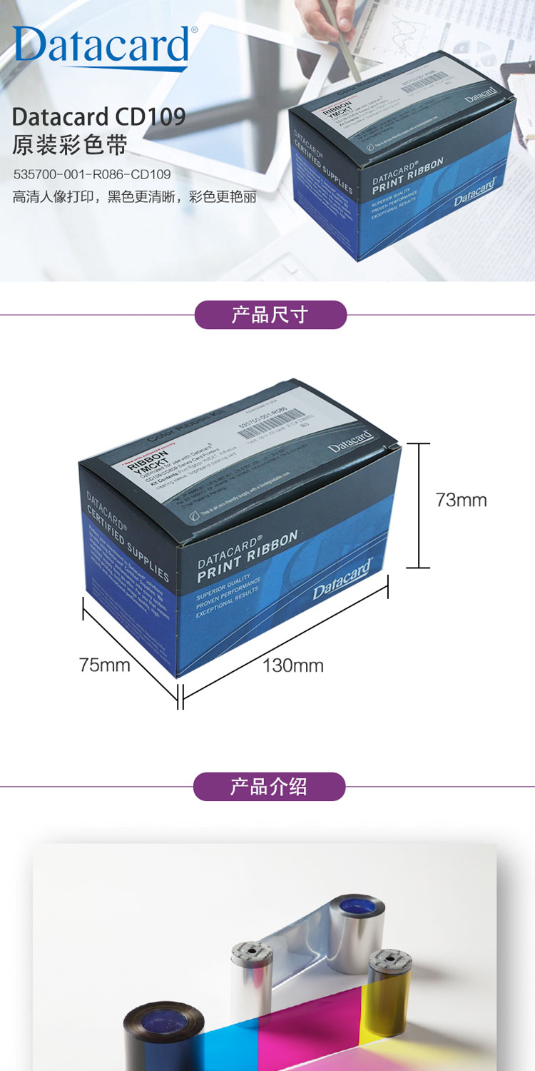 • 商品名称:Datacard CD109 可擦写 打印机CD109彩色带 单面证卡打印机适用 黑蓝 (单位:个)