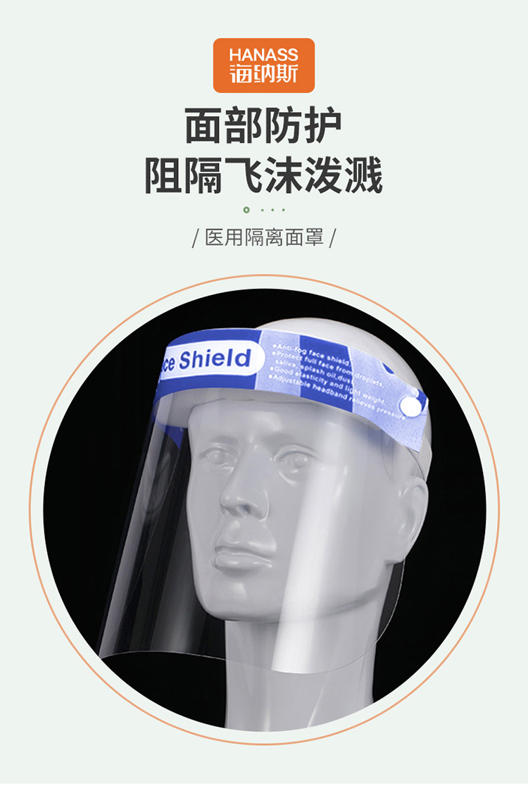 • 商品名称:HANASS 330*220mm 1个装 医用隔离面罩 防尘防飞沫防喷溅全脸防护 高清透光 大屏保护面罩头戴式(单位:个)