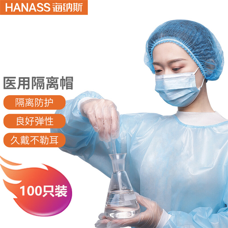 • 商品名称:HANASS 一次性 无纺布医用隔离帽100只/袋 蓝色(单位:袋)