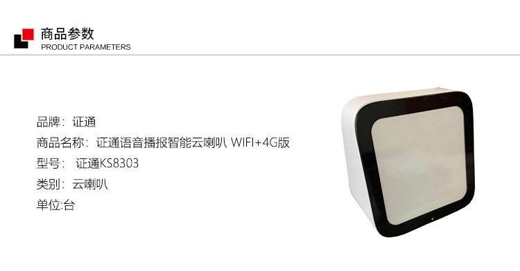 • 商品名称:证通 KS8303 语音播报智能云喇叭 WIFI+4G版(单位:台)