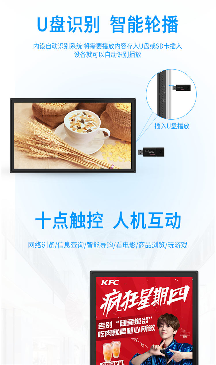 生活电器  > 电视机  > 触摸一体机  >  优色  >  优色 AD430PBH-YHX 43英寸 2G+16G 专显壁挂安卓一体机 横竖屏广告机(单位:台)