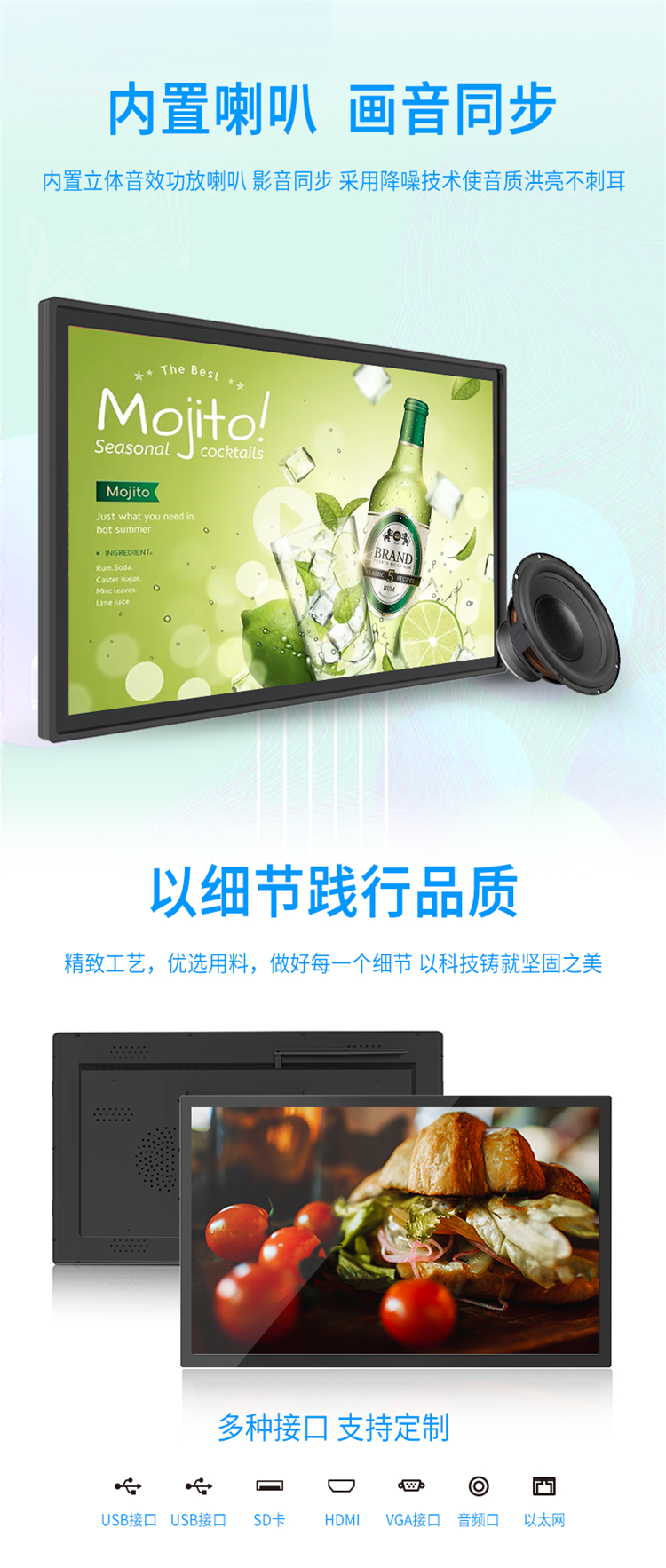 • 商品名称:优色 AD430PBH-YHX 43英寸 2G+16G 专显壁挂安卓一体机 横竖屏广告机(单位:台)