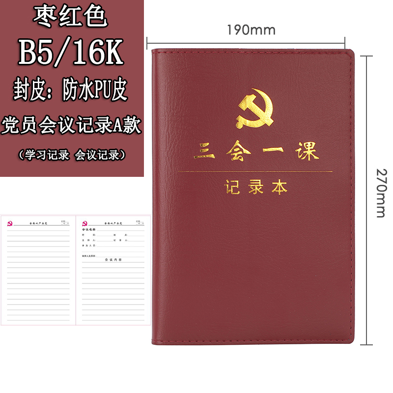 • 商品名称:皖国徽采 2020新款 32k三会一课会议记录本 枣红色(单位:本)