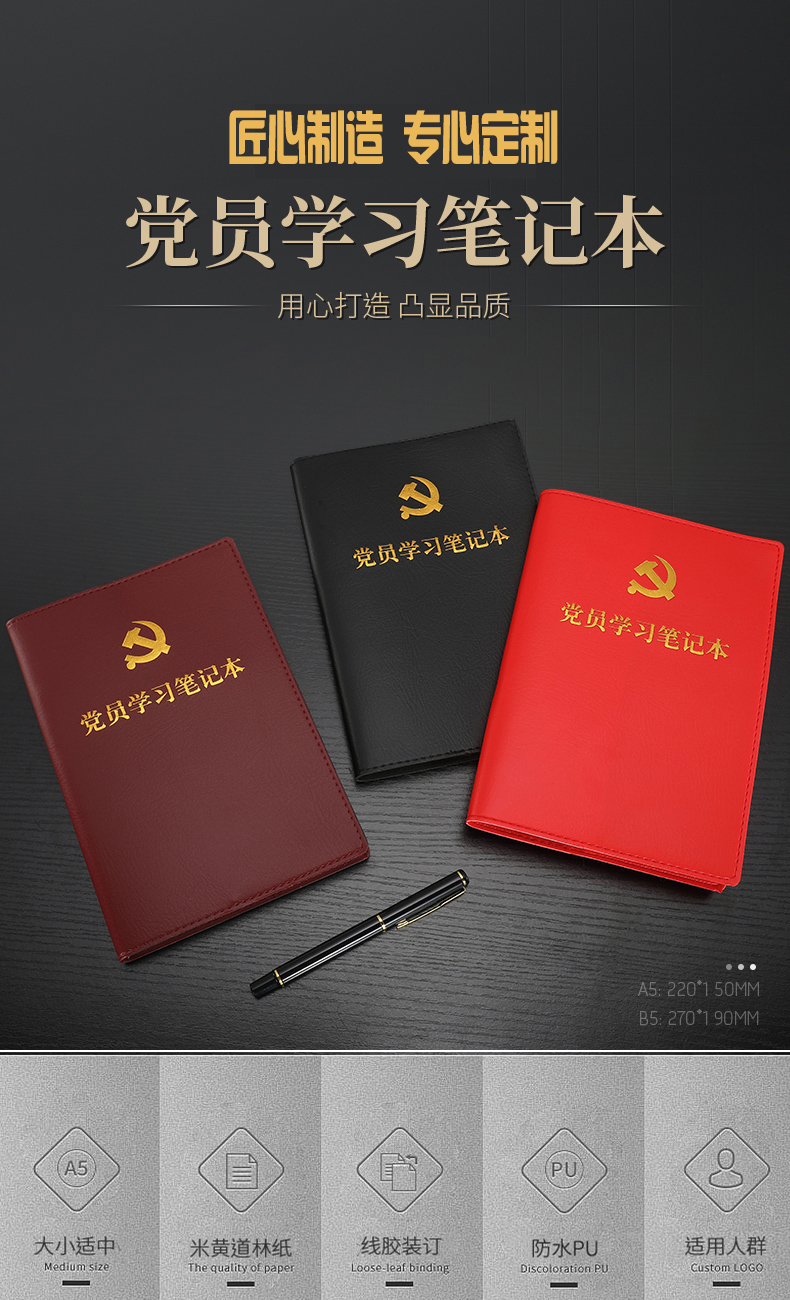 办公文具  > 本册标签  > 商务本(皮面本/PU/PVC笔记本)  >  皖国徽采  >  皖国徽采 2020新款 32k三会一课会议记录本 枣红色(单位:本)