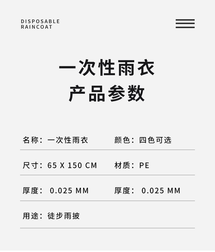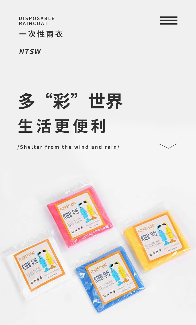 • 商品名称:耐特赛威 NTSW-DW9188 50只装PE一次性雨衣 便携长款连体一次性雨衣 可选颜色(单位:套)