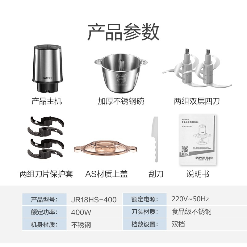 • 商品名称:苏泊尔 JR18HS-400 双刀 不锈钢多能料理机搅拌机 (单位:台)