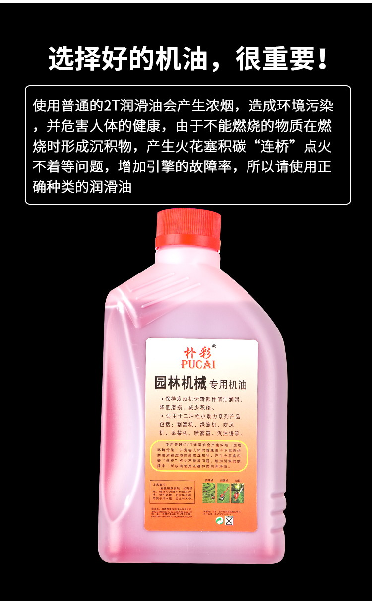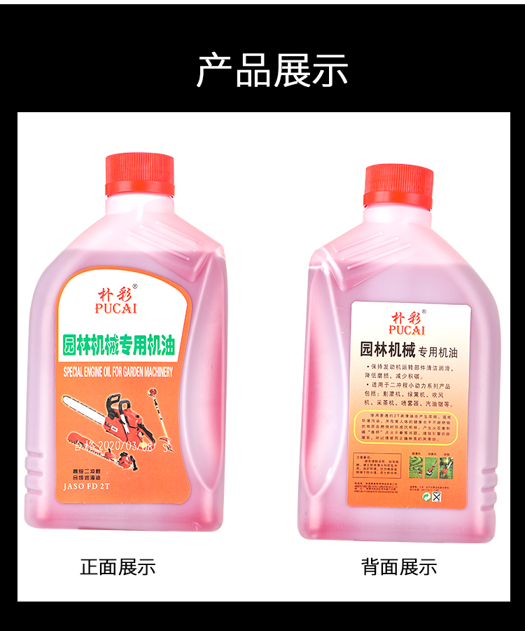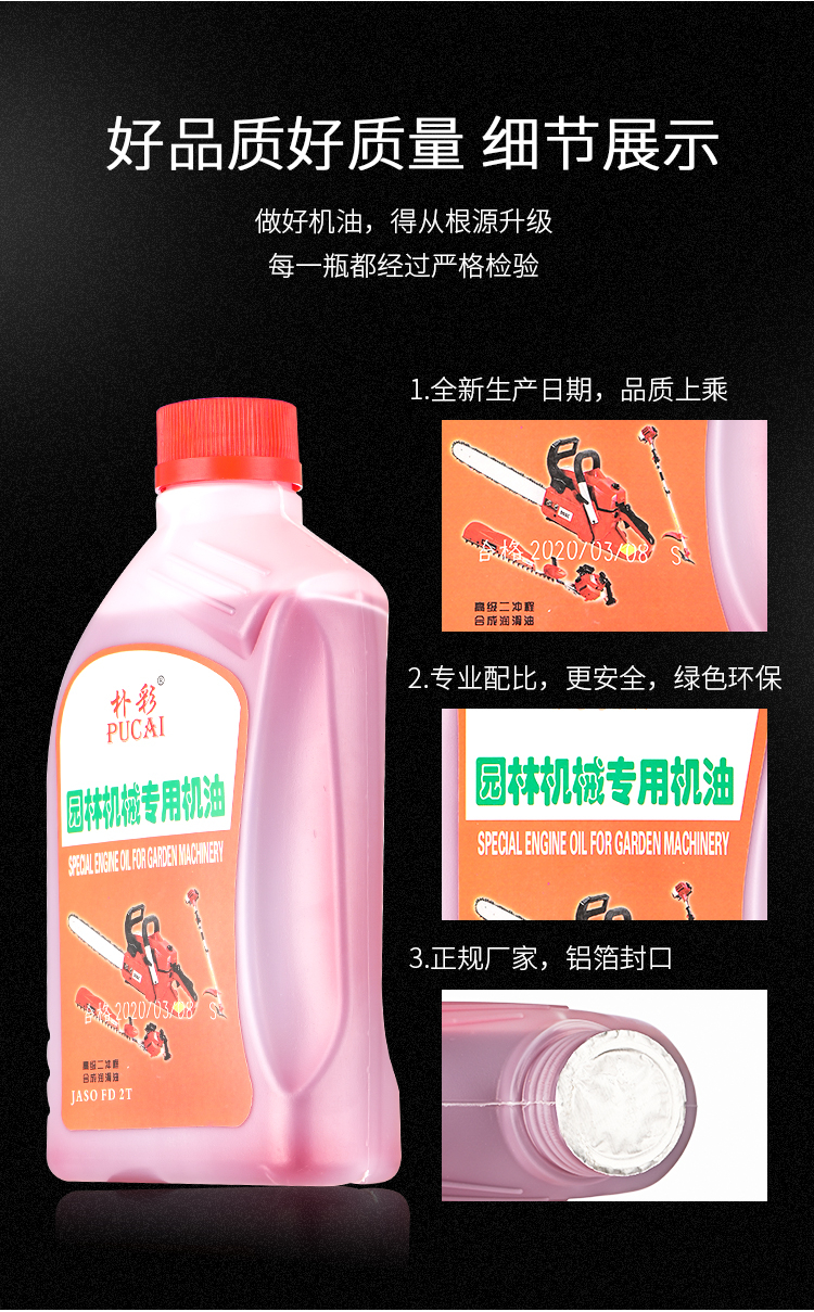 • 商品名称:朴彩 二冲程割草机机油 油锯机 园林机械专用 粉色(单位:瓶)