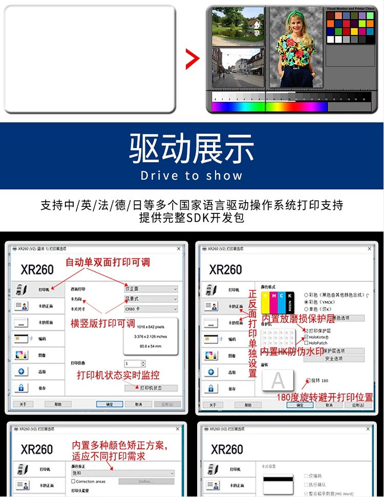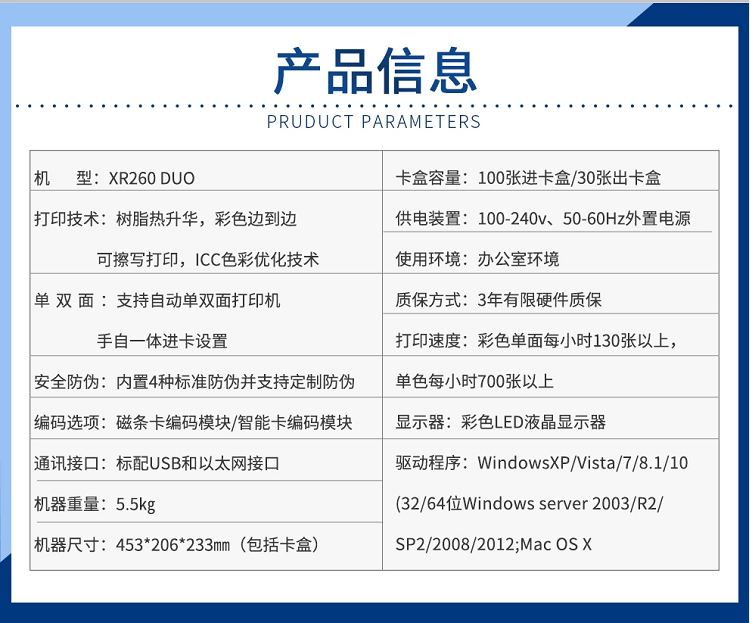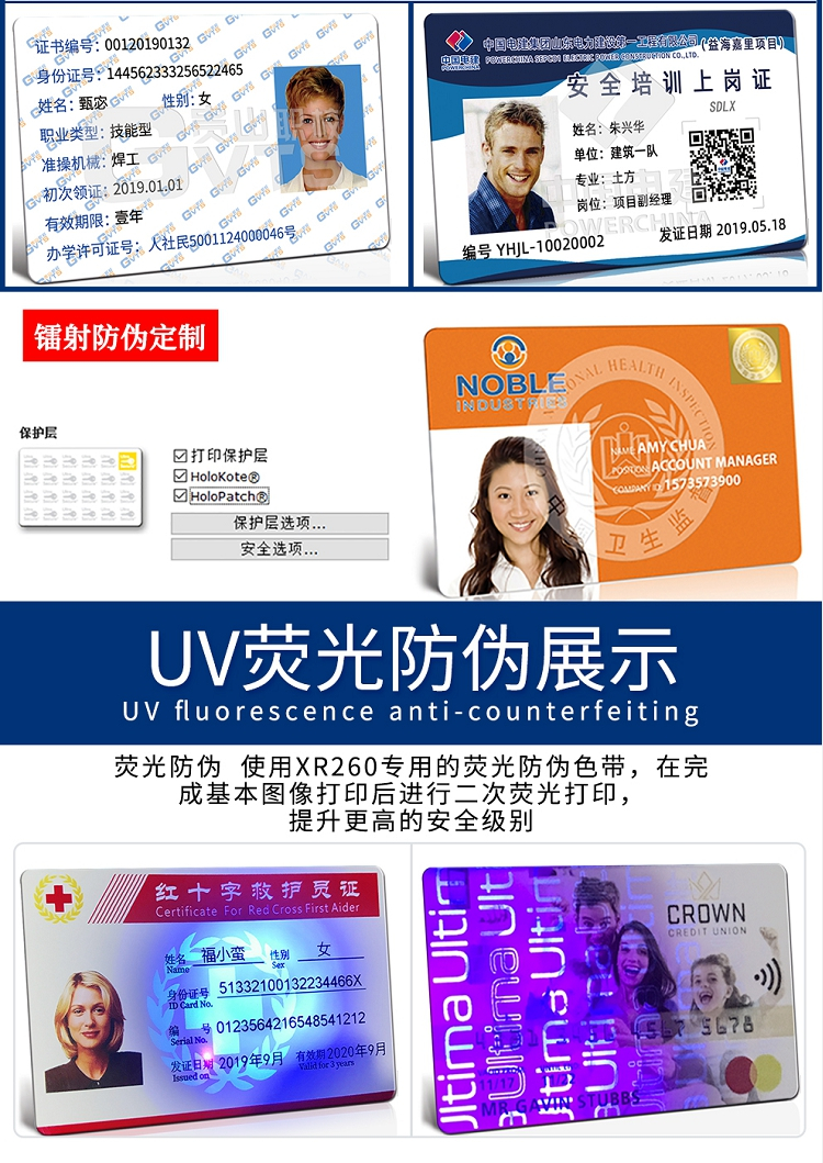 • 商品名称:国产 XR260 证卡打印机双面健康卡工牌会员卡工作证ICID卡考勤卡制卡机色带 彩色(单位:个)