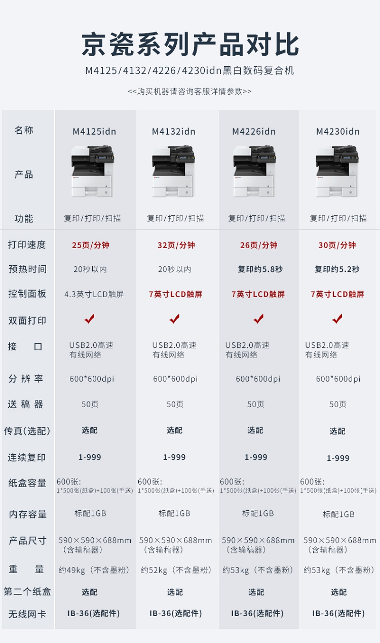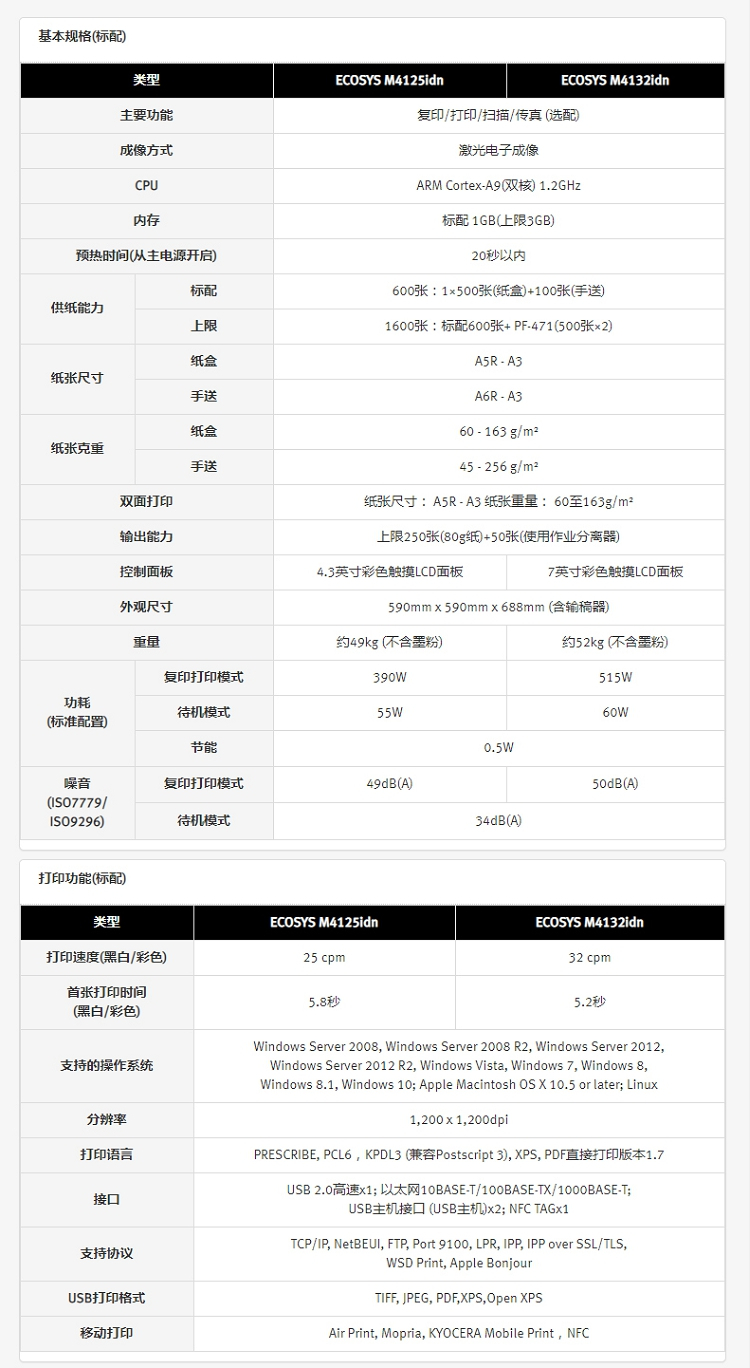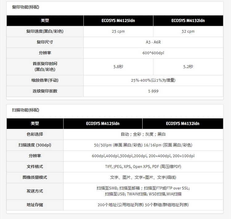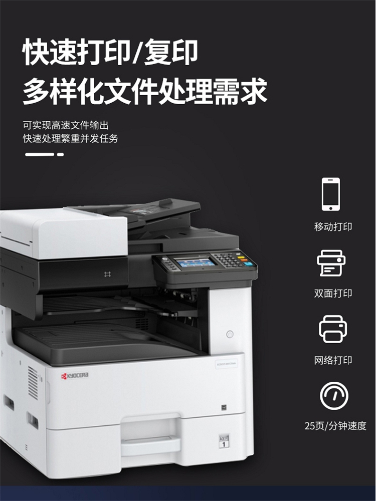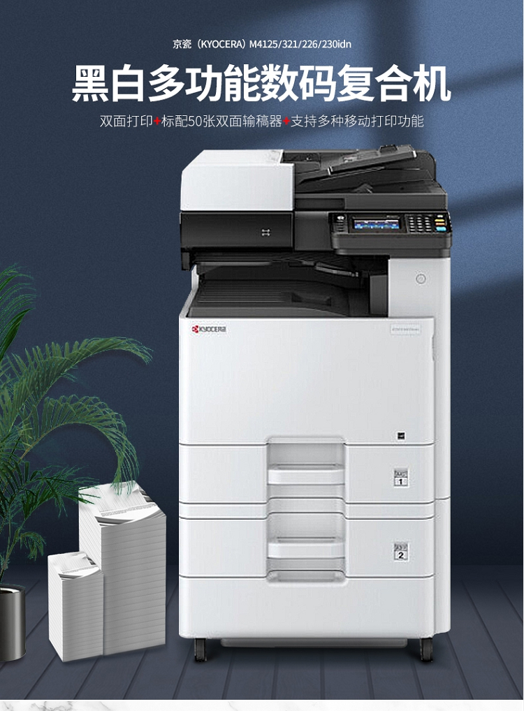 • 商品名称:京瓷 M4125idn 黑白激光A3打印机多功能一体机 双面输稿器+网络 25页/分(单位:台)