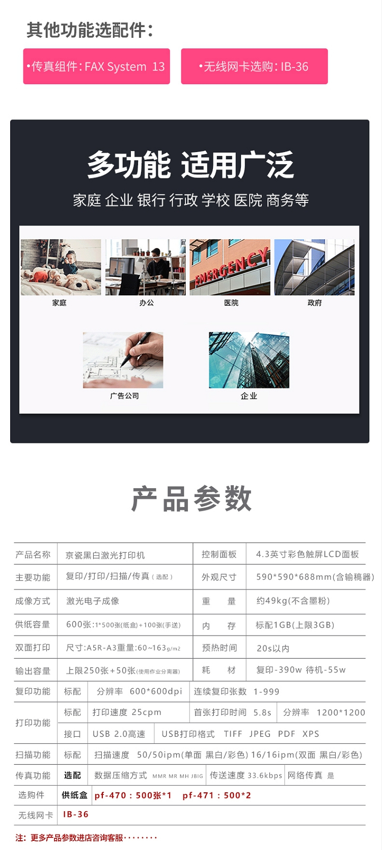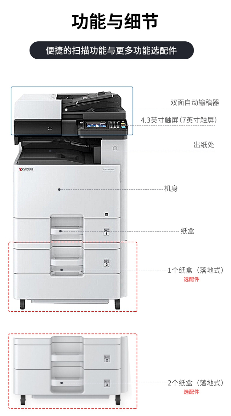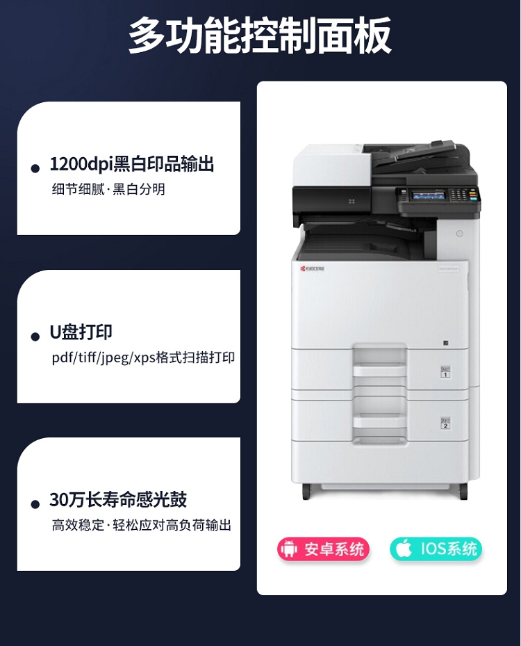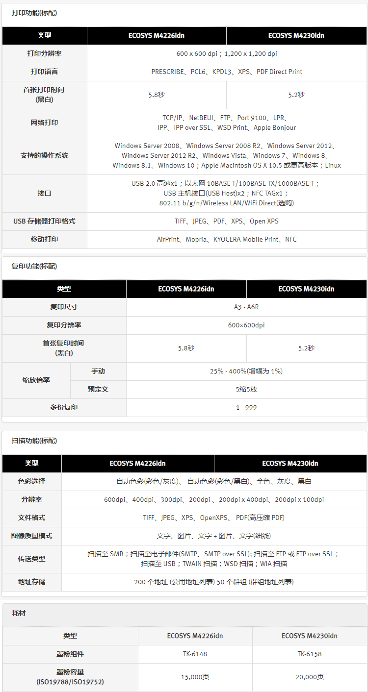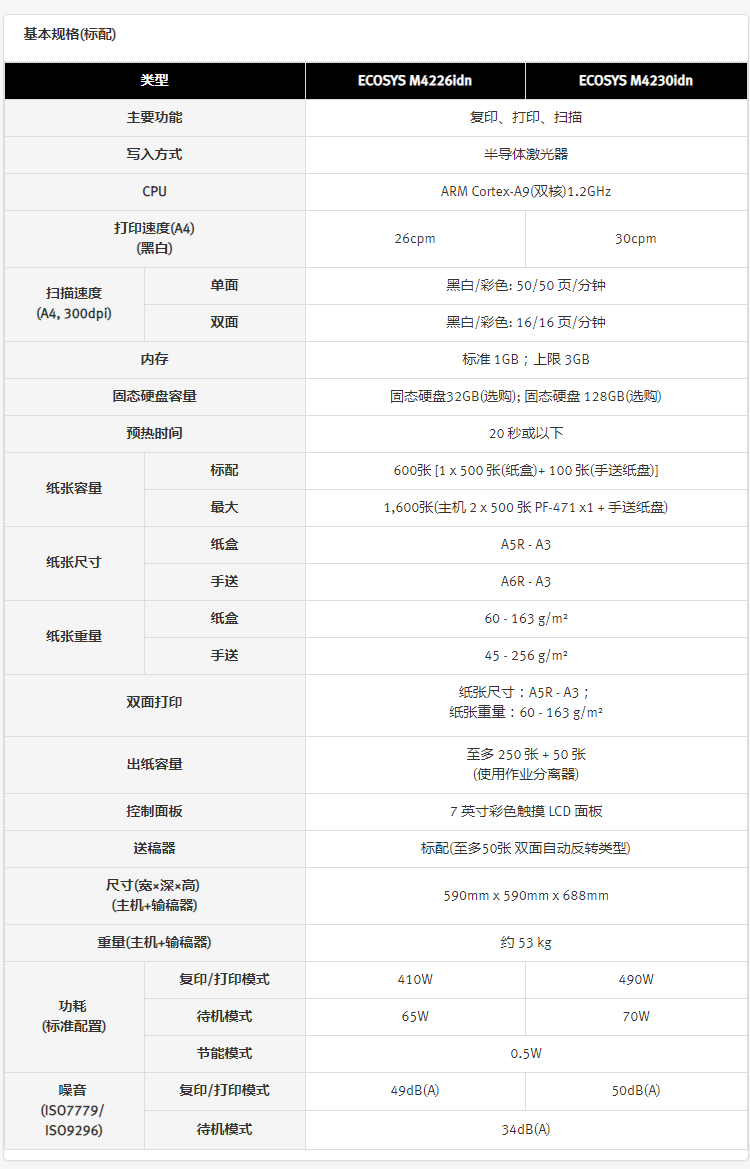 • 商品名称:京瓷 M4125idn 黑白激光A3打印机多功能一体机 双面输稿器+网络 25页/分(单位:台)
