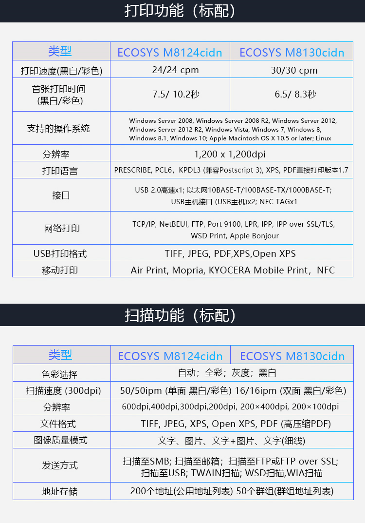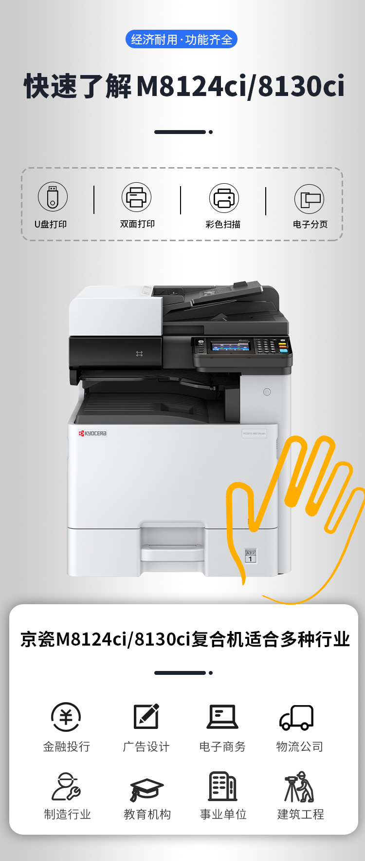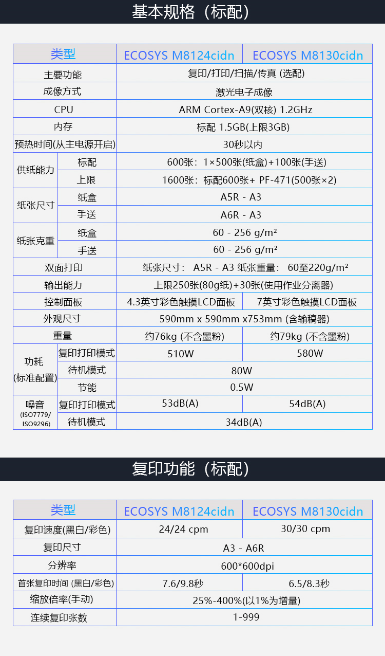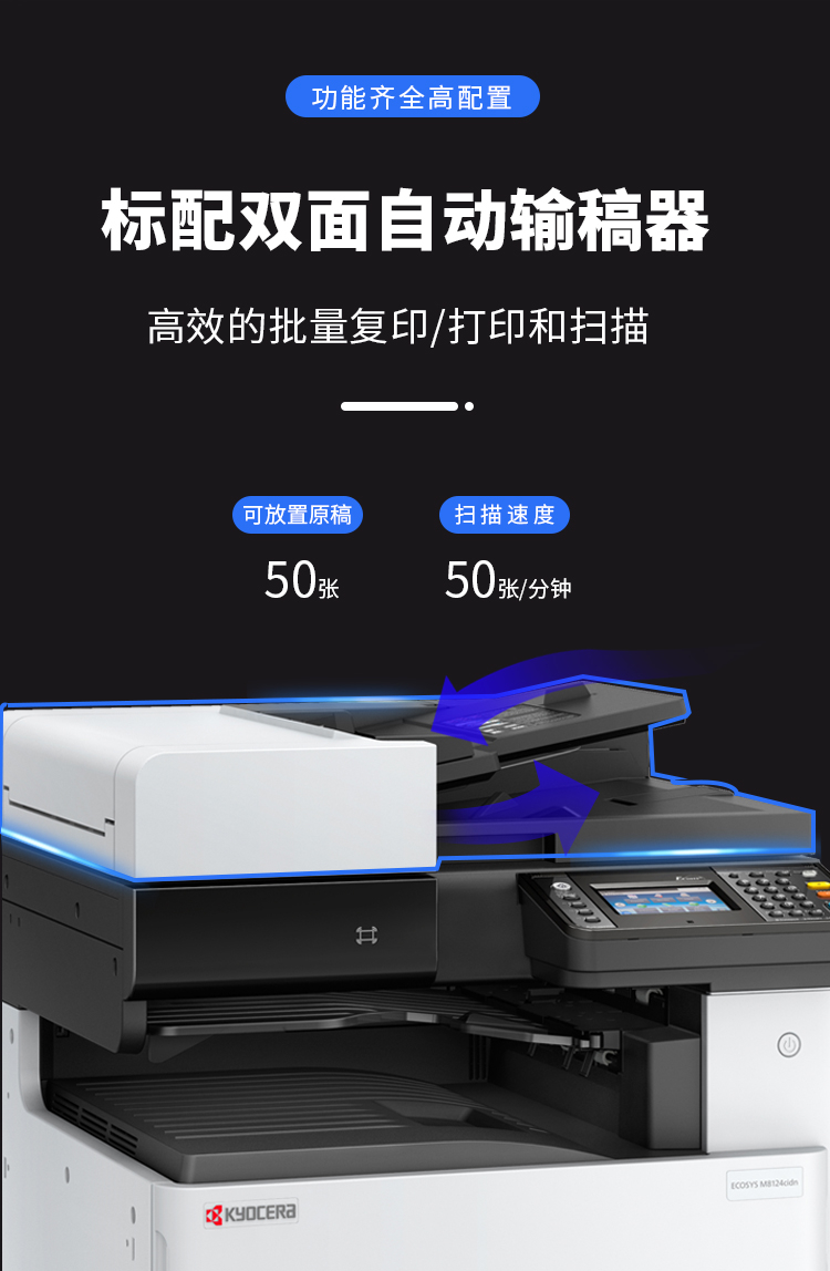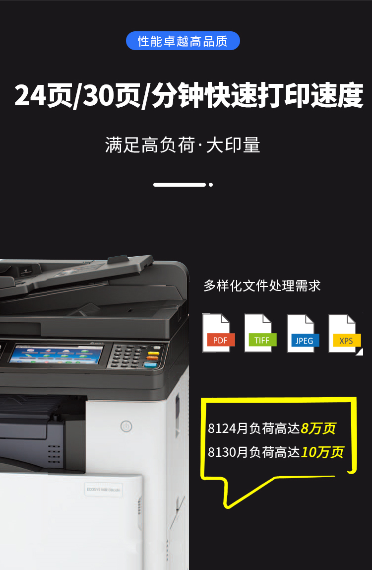 • 商品名称:京瓷 M8130 A3彩色激光打印机复合机 双面打印+网络打印+输稿器(单位:台)