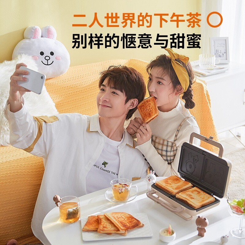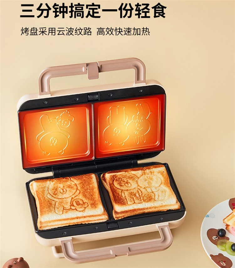 九阳(Joyoung)三明治机line联名系列早餐机家用加热轻食机多功能吐司压烤面包 SK-T3 榛果色(单位:个)