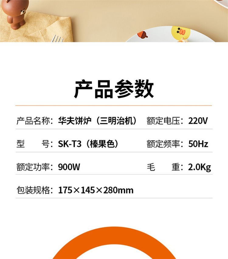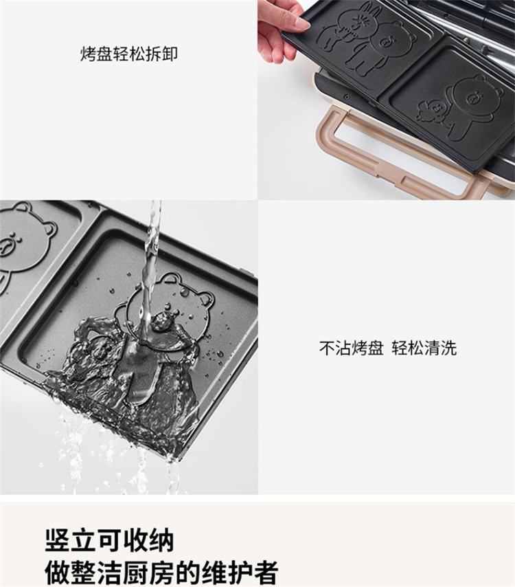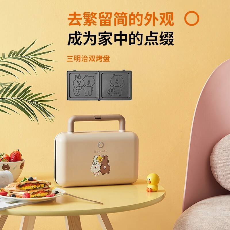 • 商品名称:九阳(Joyoung)三明治机line联名系列早餐机家用加热轻食机多功能吐司压烤面包 SK-T3 榛果色(单位:个)