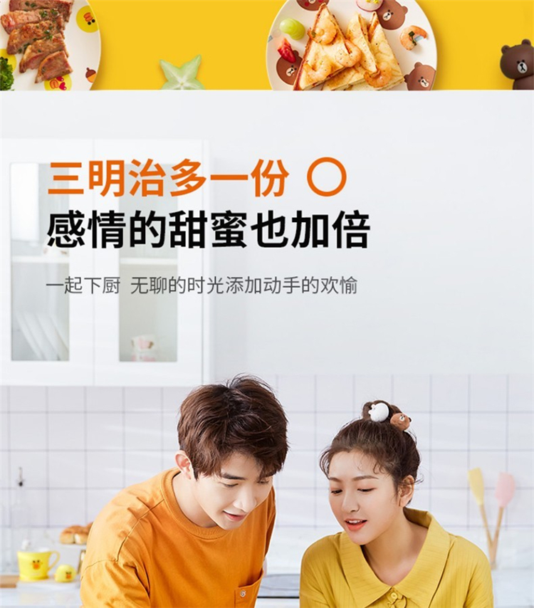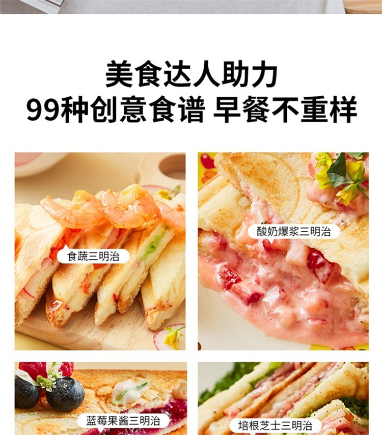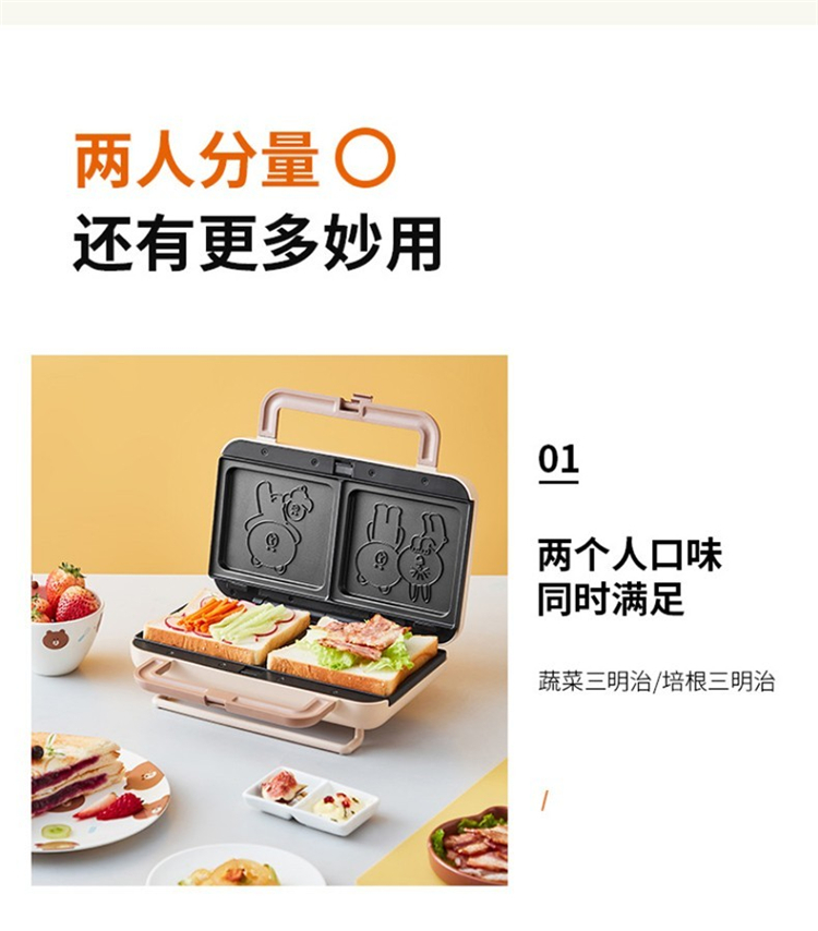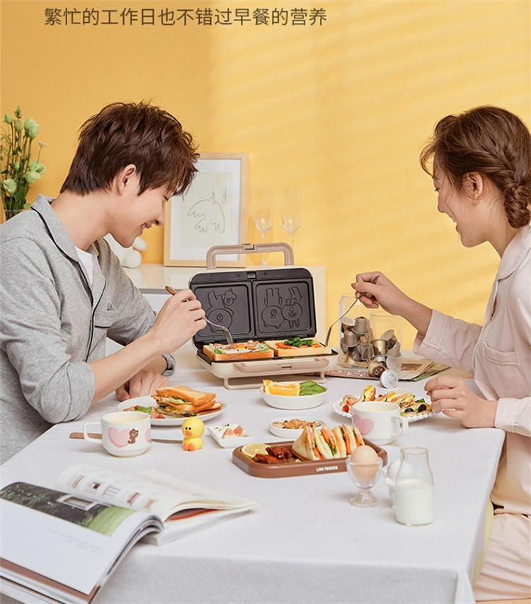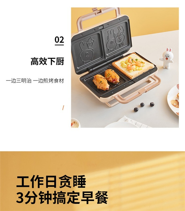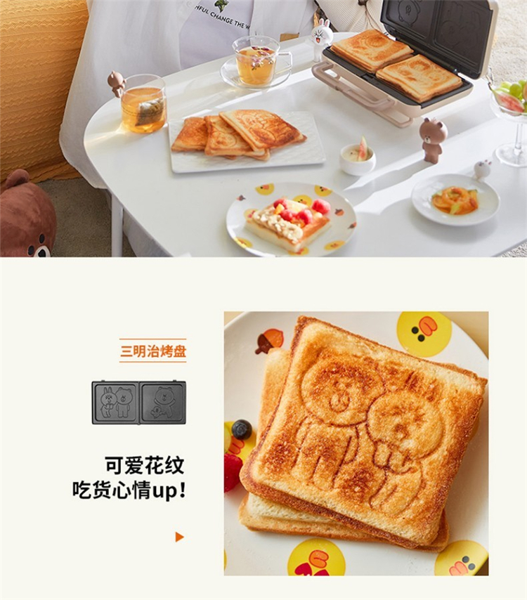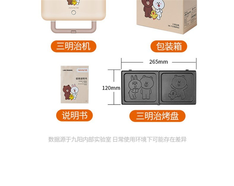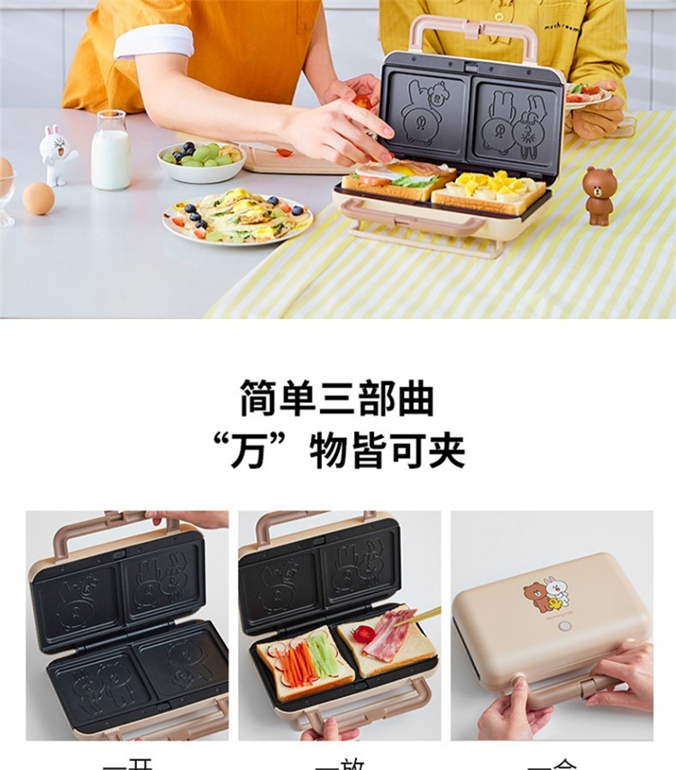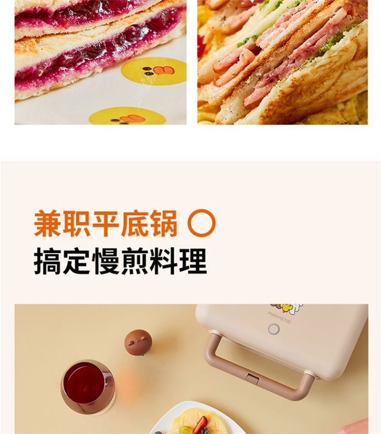 生活用品  > 厨具  > 烹饪锅具  >  九阳/Joyoung  >  九阳(Joyoung)三明治机line联名系列早餐机家用加热轻食机多功能吐司压烤面包 SK-T3 榛果色(单位:个)