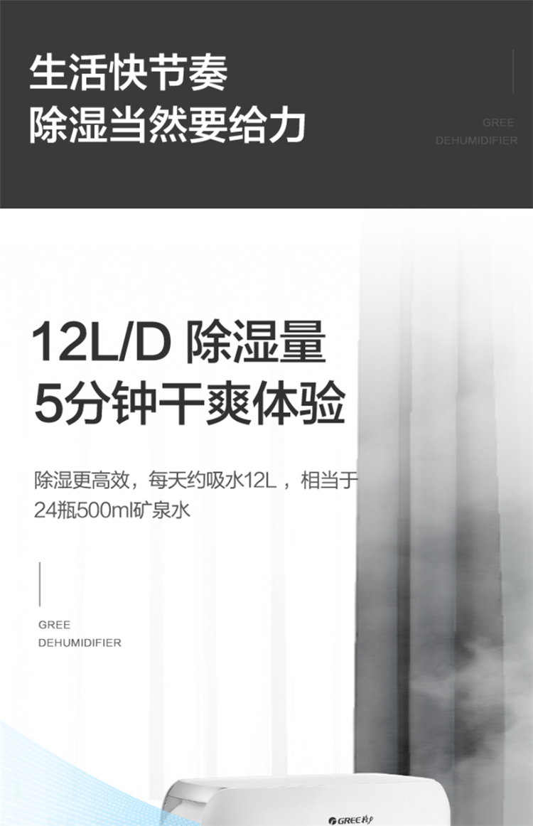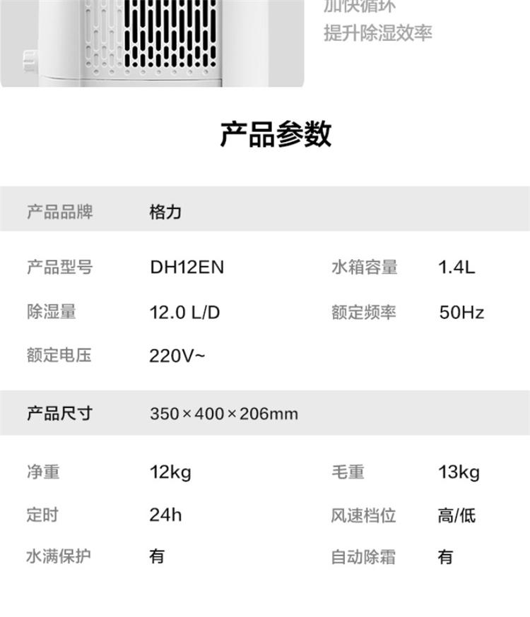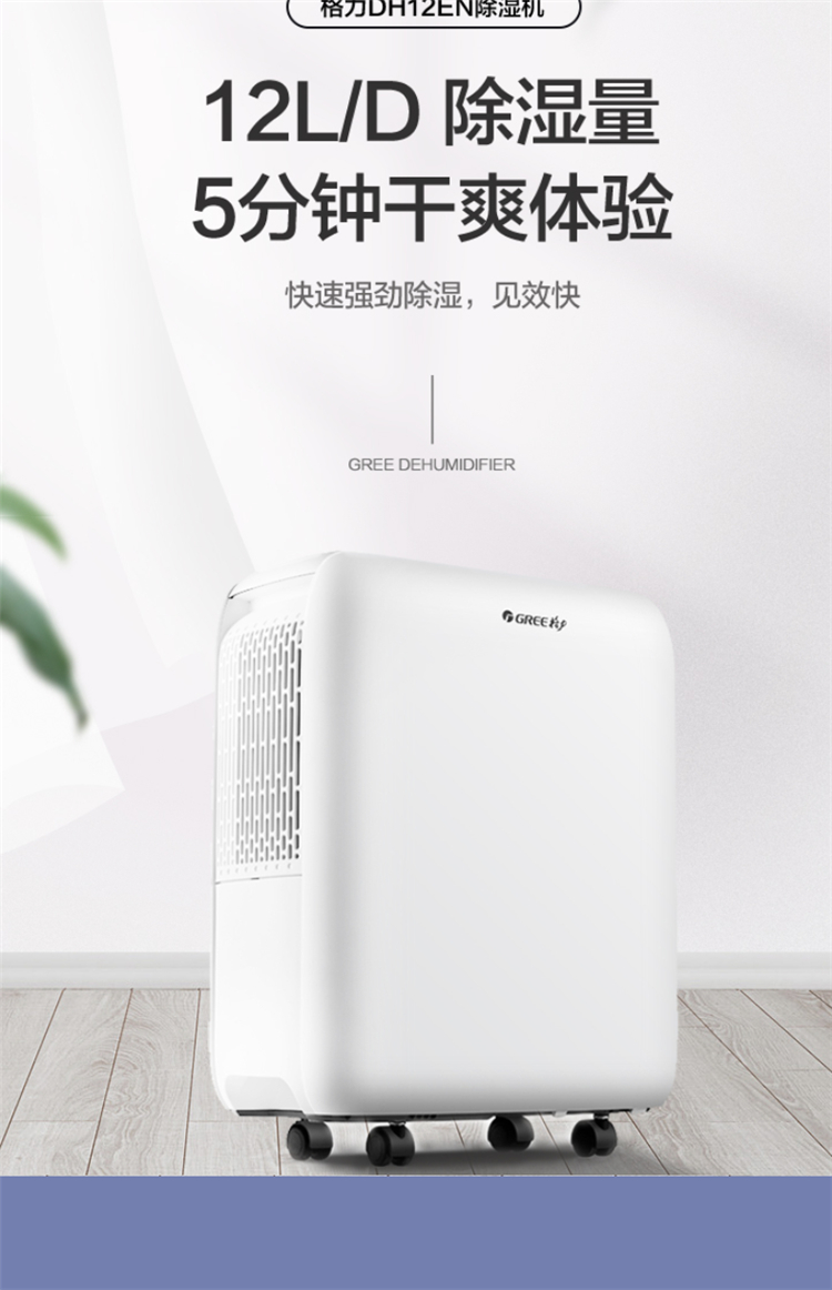 • 商品名称:格力(GREE)除湿机12升/天抽湿机家用抽湿器卧室办公室地下室轻音干衣机除湿器DH12EN(单位:台)