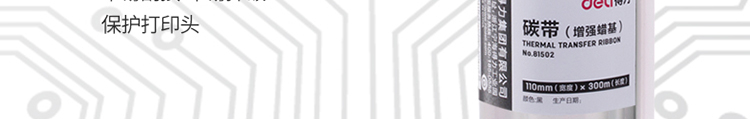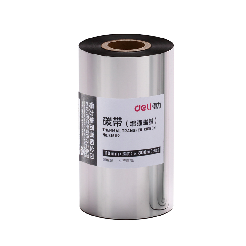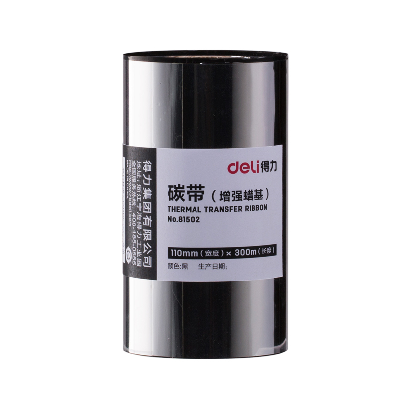 得力(deli) 110mm*300m热转印条码打印机 标签机通用型碳带 增强蜡基碳带81502(单卷装)(单位:卷)