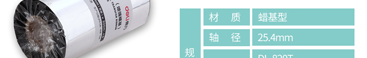 商品名称: 得力(deli) 110mm*300m热转印条码打印机 标签机通用型碳带 增强蜡基碳带81502(单卷装)(单位:卷)