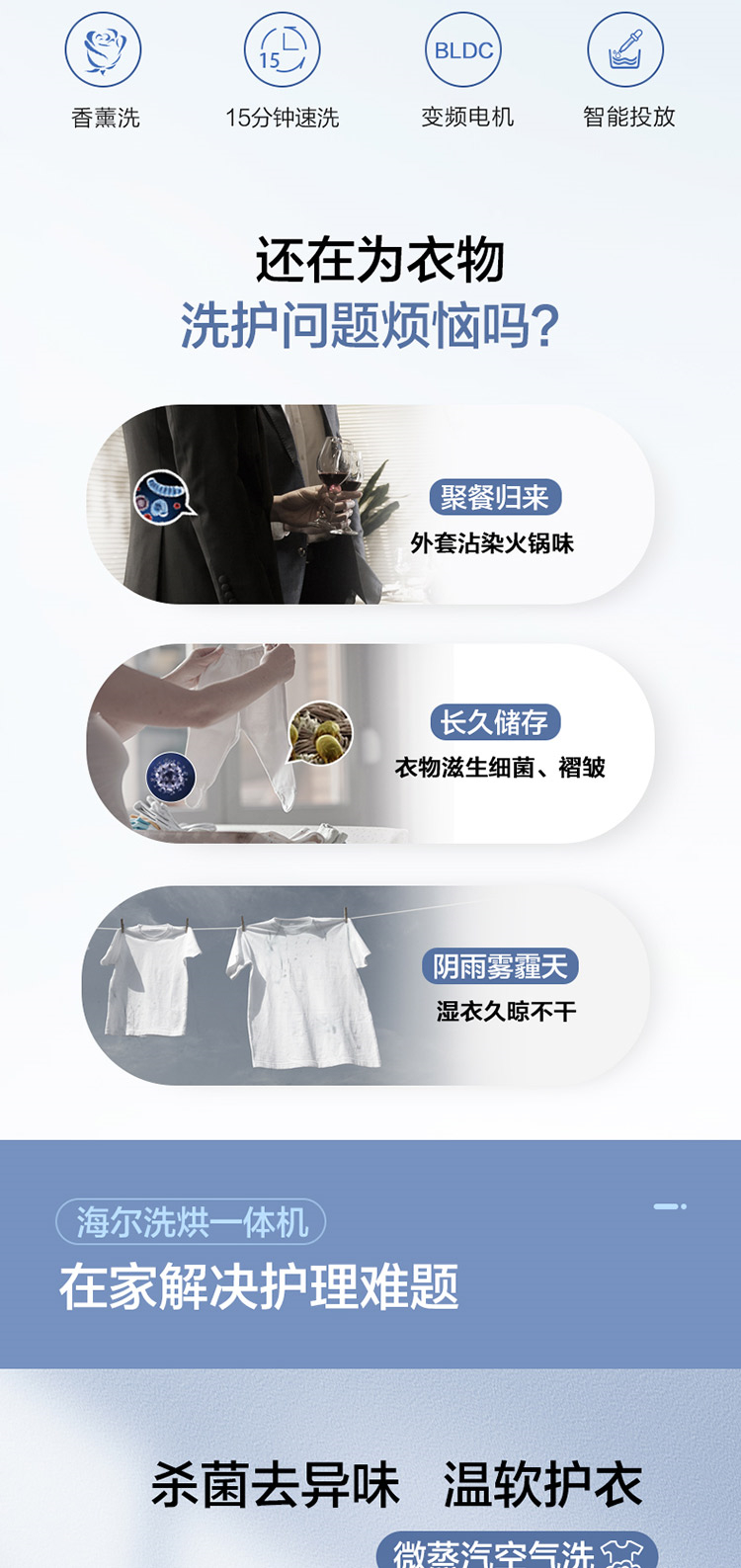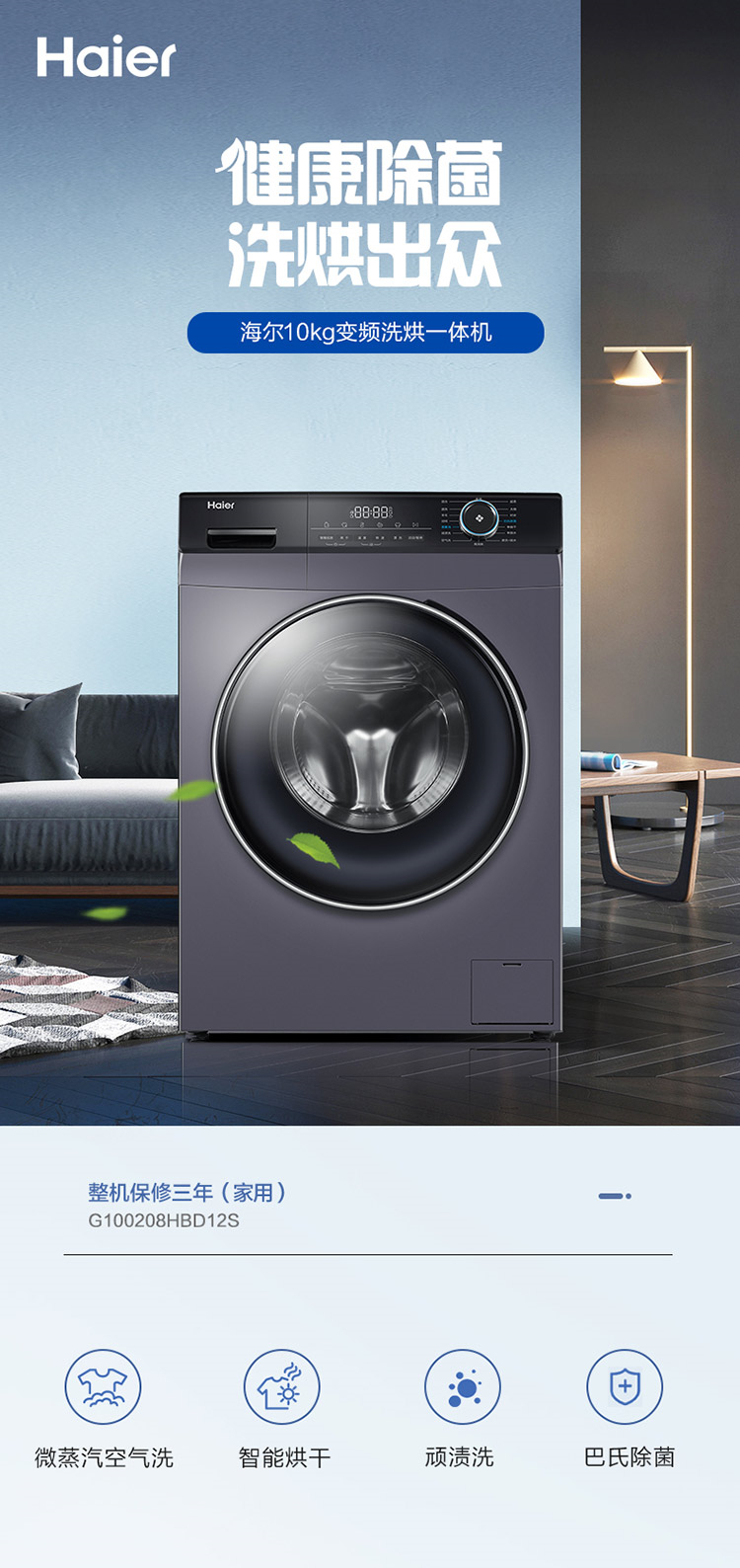 • 商品名称:海尔 10KG 滚筒洗衣机全自动洗烘一体机 变频一级能效智能投放巴氏杀菌(单位:台)