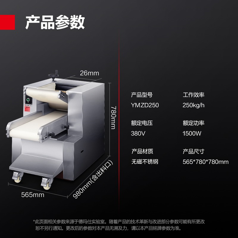 • 商品名称:德玛仕(DEMASHI)YMZD250 包子馒头压面机 商用电动压面条机擀面机大型不锈钢 【全自动循环压面】500斤/小时 (单位:台)