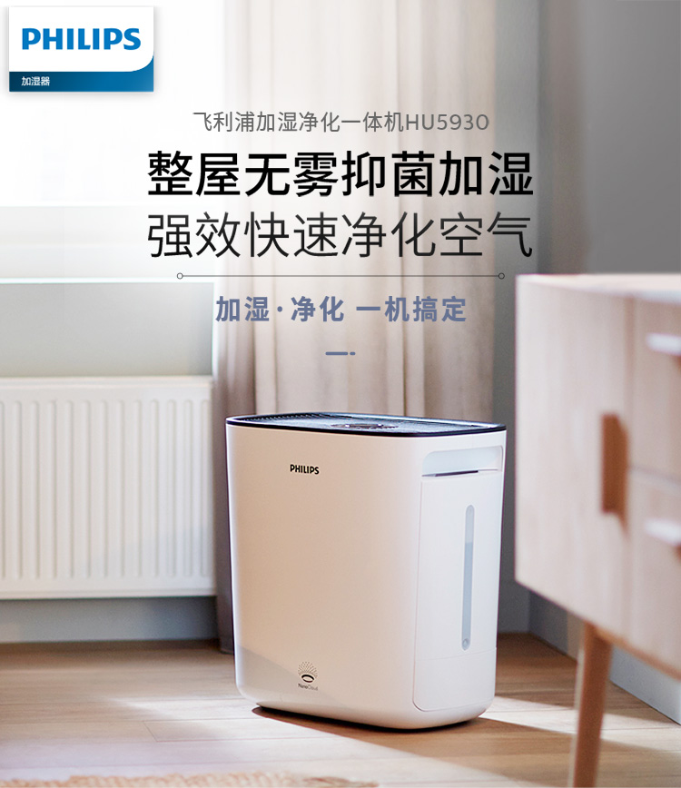 生活电器  > 清洁设备  > 空气净化器/加湿器  >  飞利浦/PHILIPS  >  飞利浦 PHILIPS 加湿净化一体机HU5930 零水雾5000系列