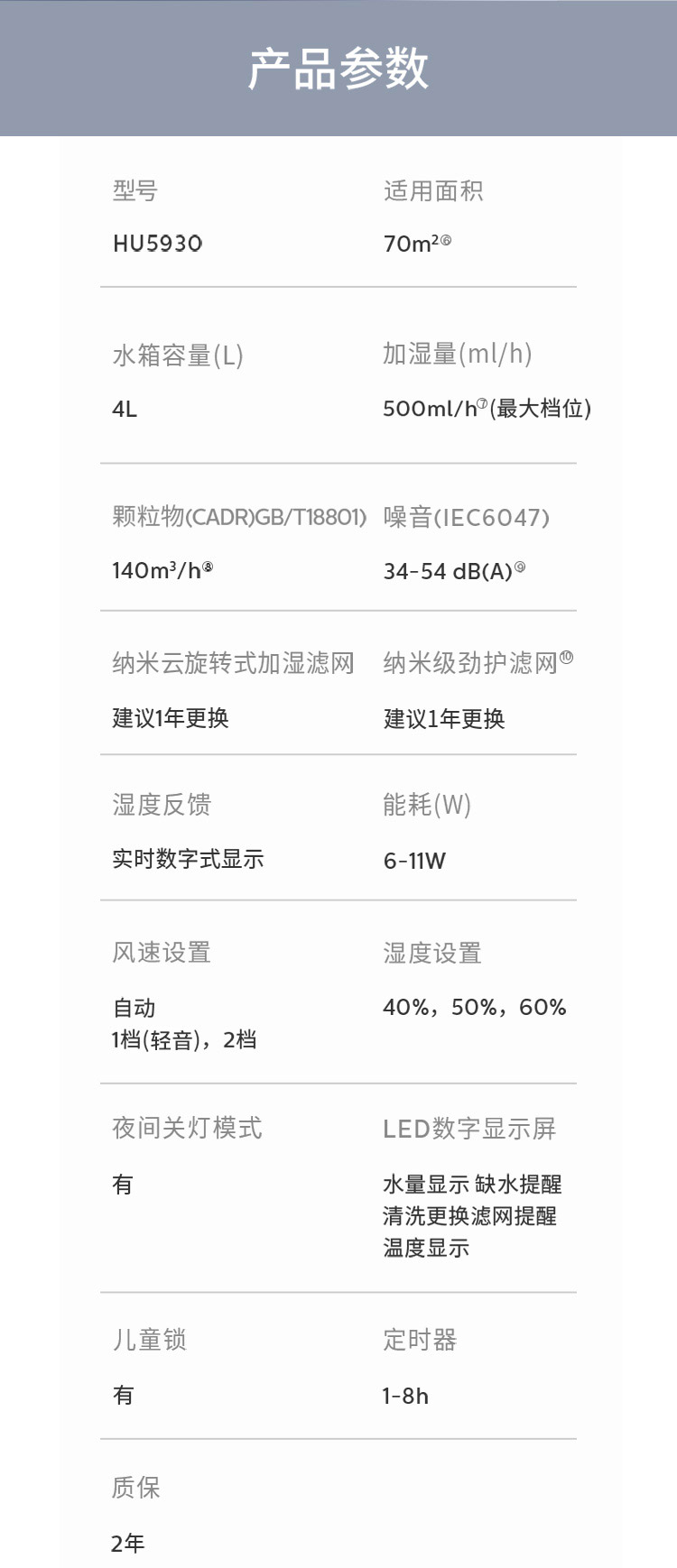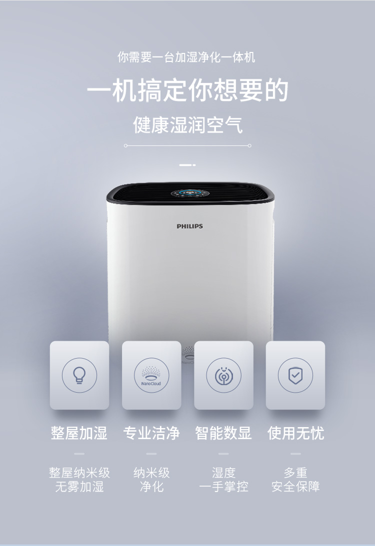• 商品名称:飞利浦 PHILIPS 加湿净化一体机HU5930 零水雾5000系列