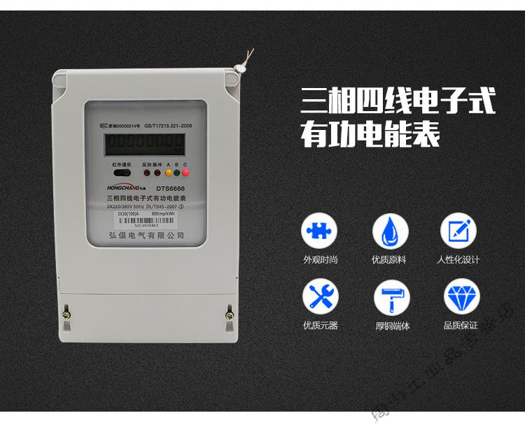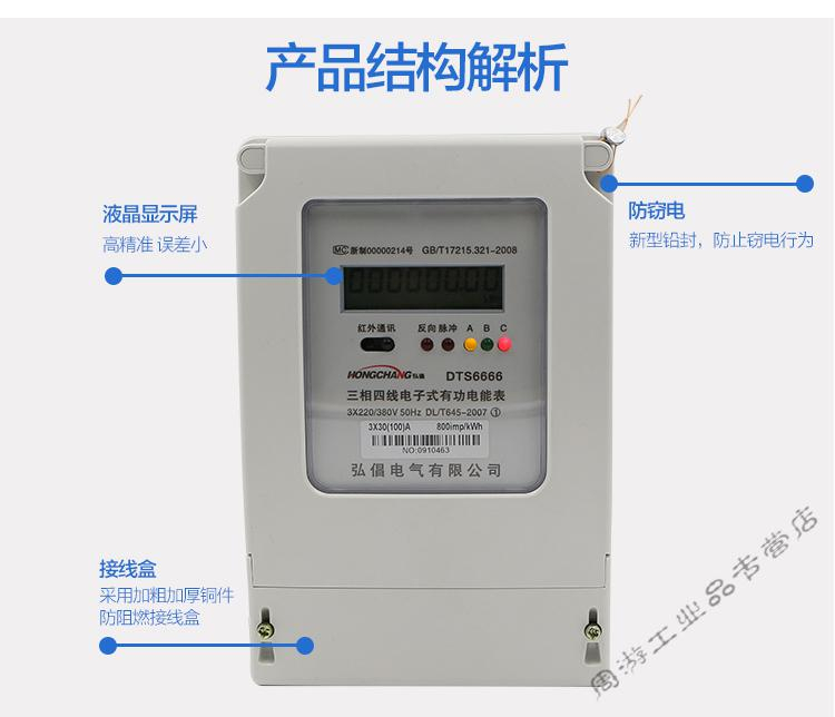 商品名称: earcum DTS6666 弘倡仪表DTS6666三相电表三相四线电子式电能表(单位:个)