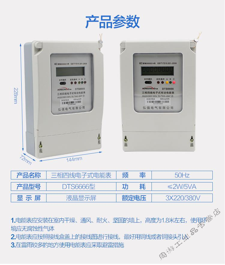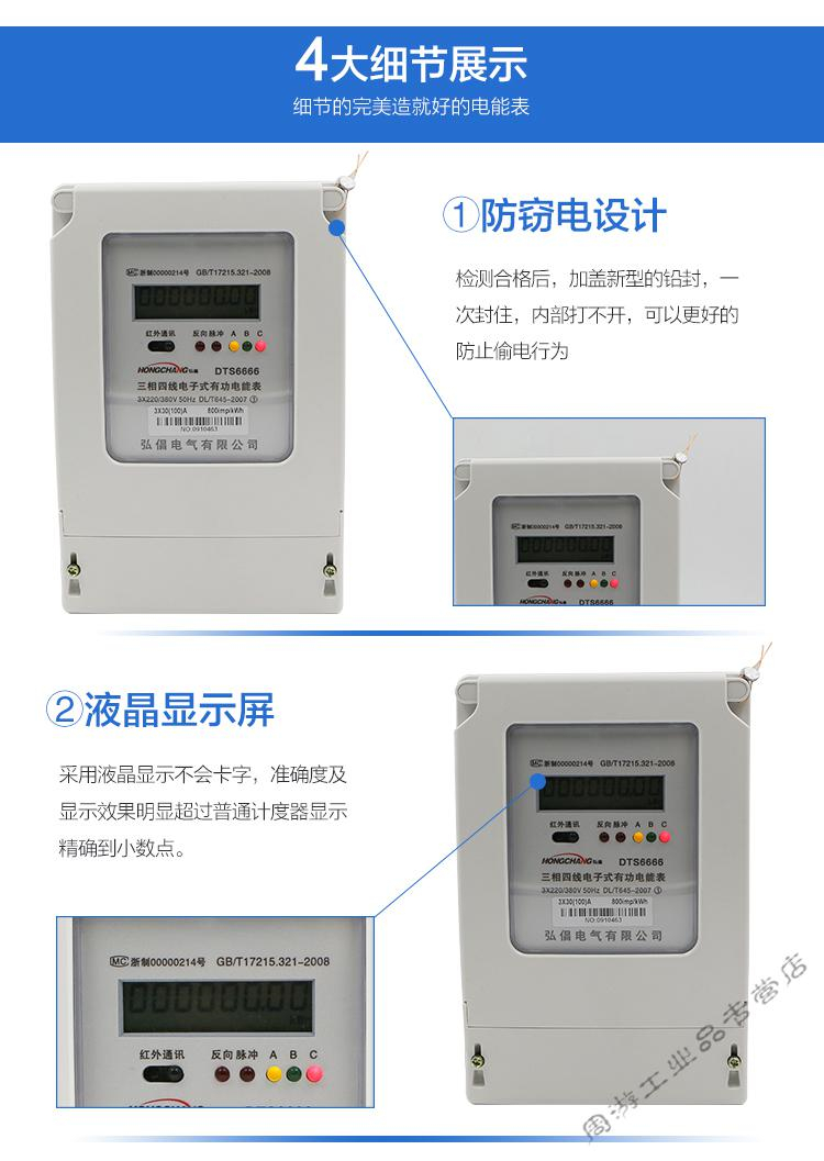 • 商品名称:earcum DTS6666 弘倡仪表DTS6666三相电表三相四线电子式电能表(单位:个)