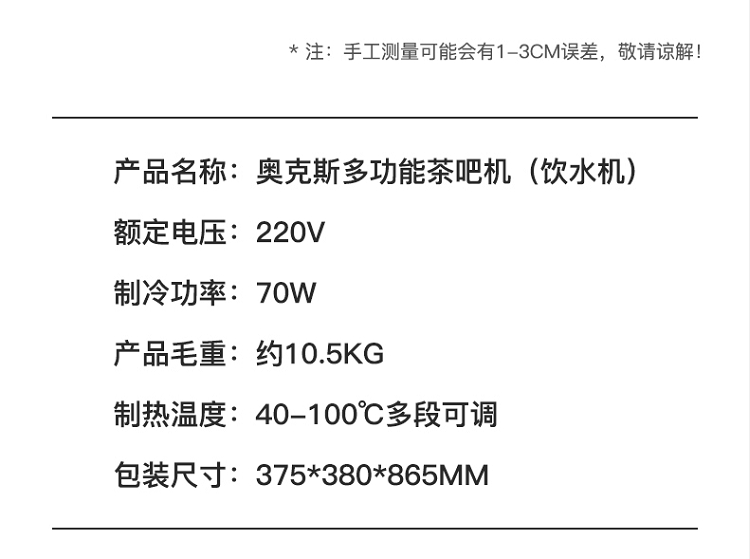 • 商品名称:奥克斯 YCB-0.75M 茶吧机 免安装折叠多功能智能遥控冷热型折叠立式下置饮水机(单位:台)