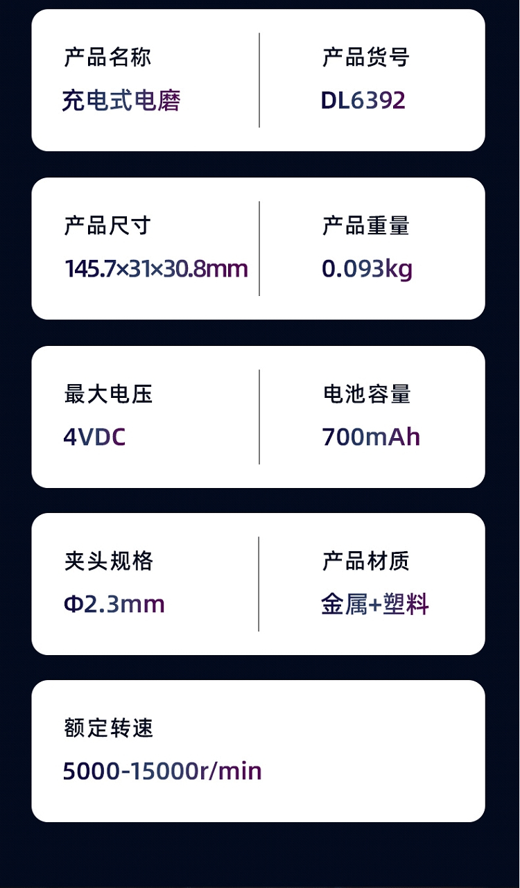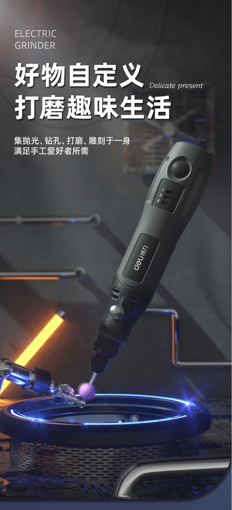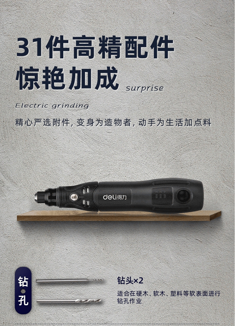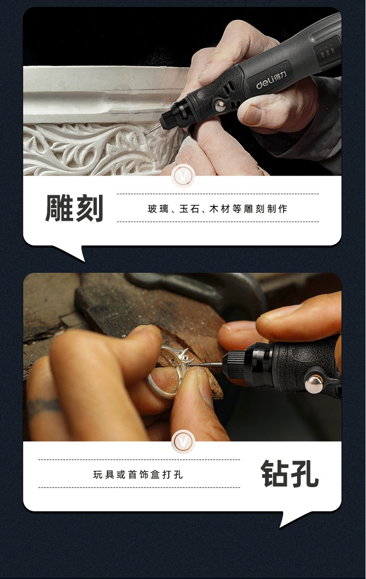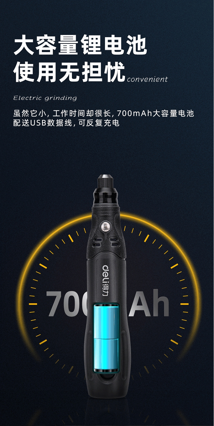 • 商品名称:得力(deli)小型锂电电磨雕刻机 雕刻工具手持迷你电钻打磨机 4V电磨DL6393(单位:台)