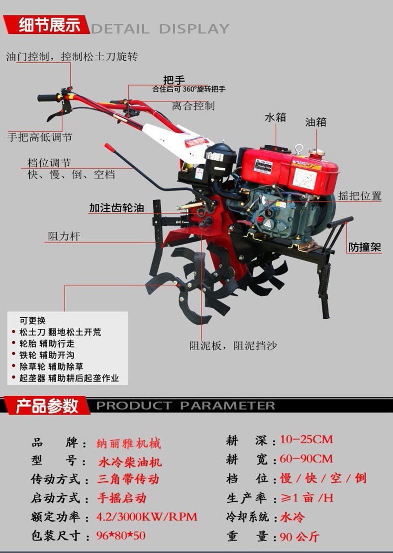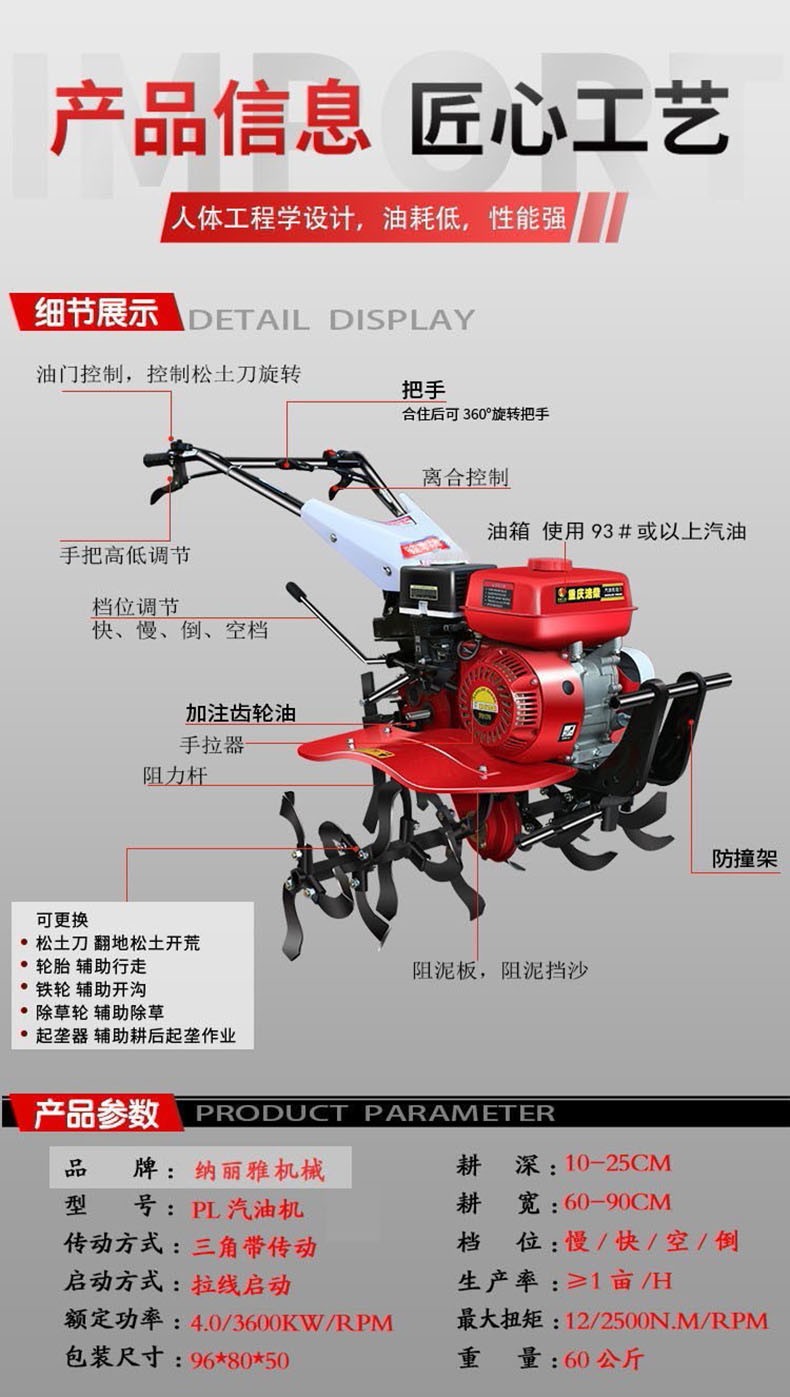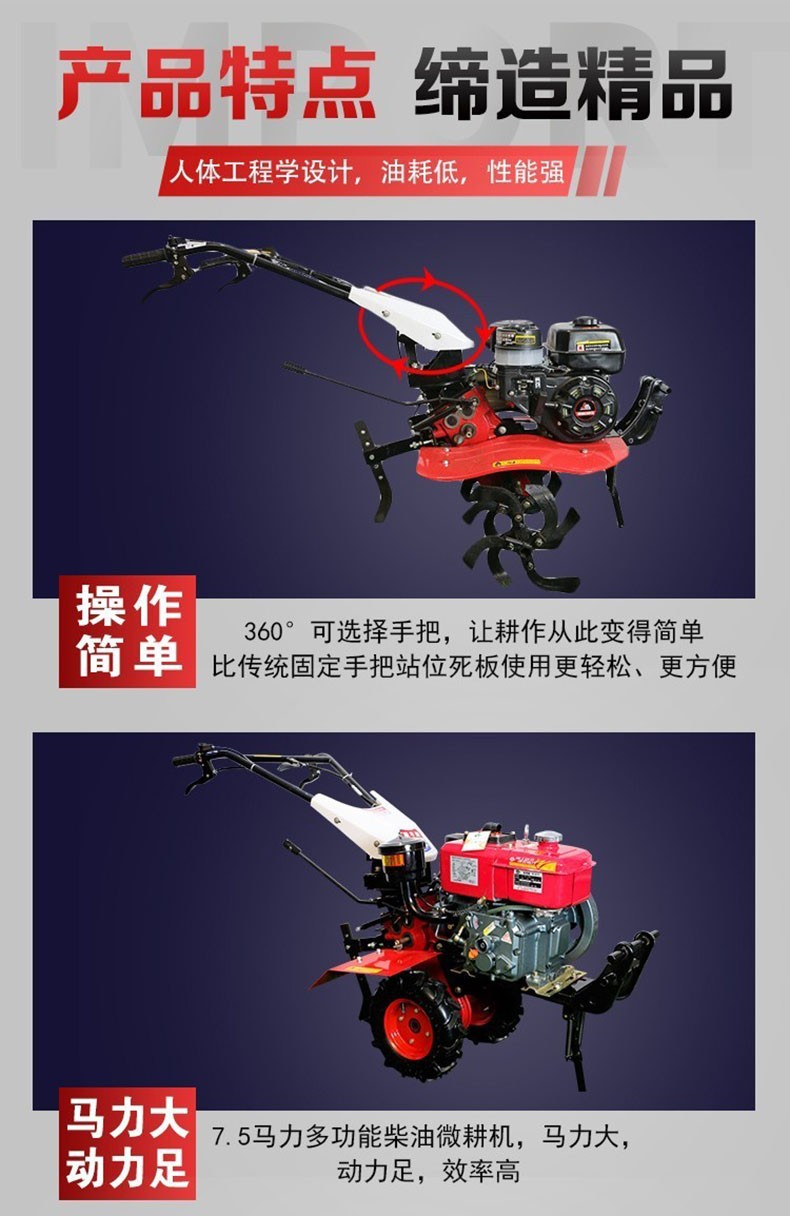 商品名称: 国产 新型两驱微耕地机 工具 170F汽油机7.5马力+旋耕刀+橡胶轮+除草轮