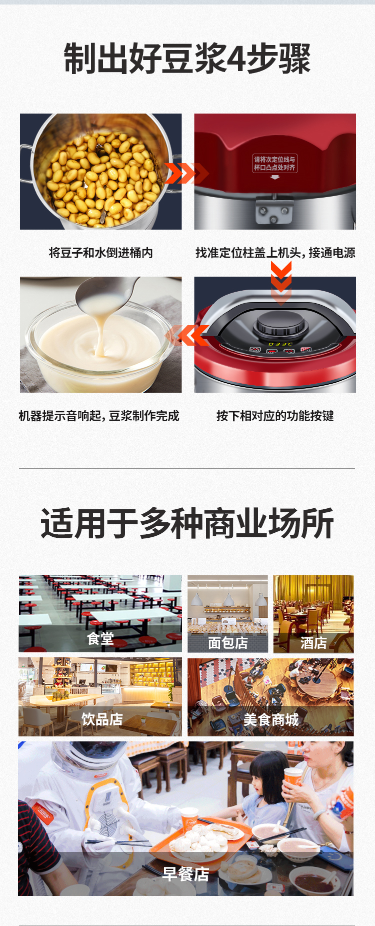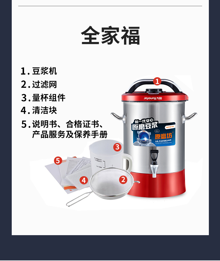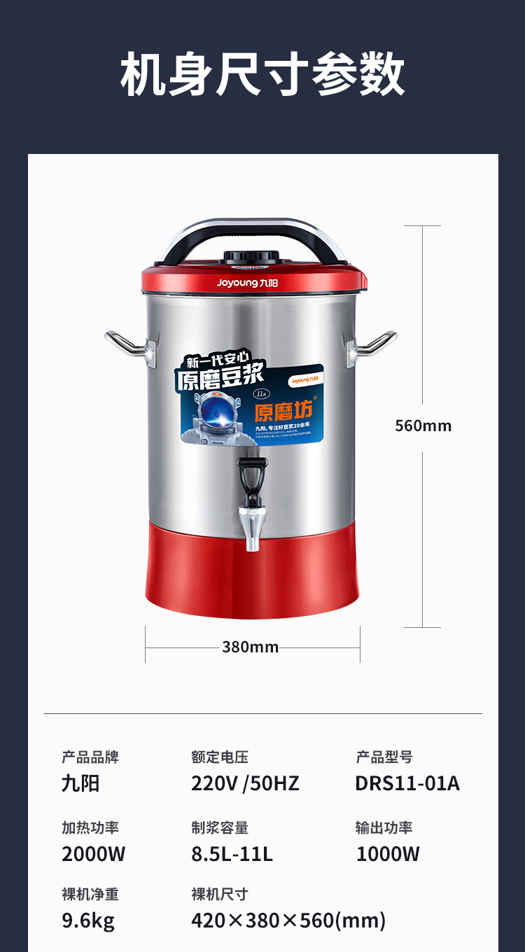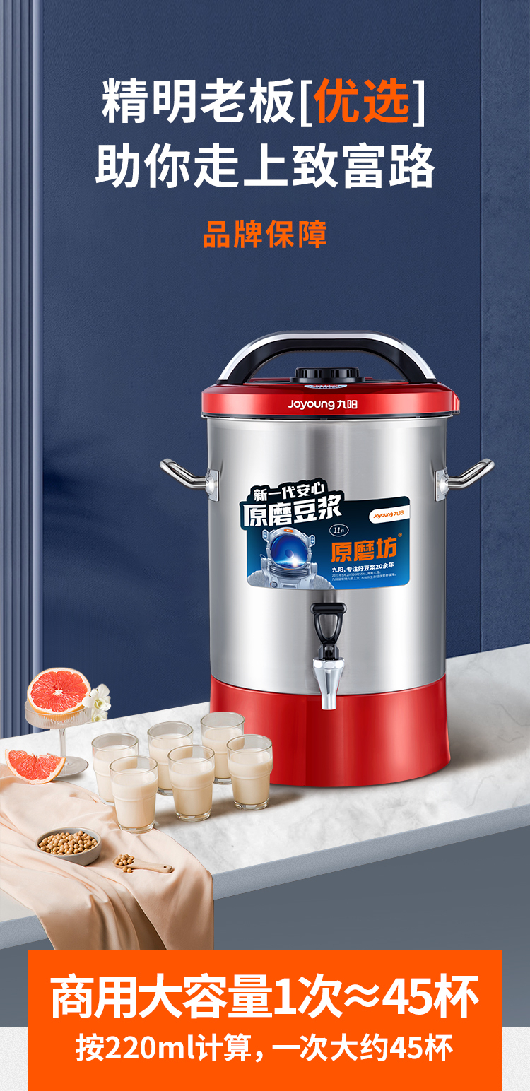 商品名称: 九阳 JYS-110S01 商用豆浆机全自动加热一体磨浆机免泡豆米糊 11L(单位:台)
