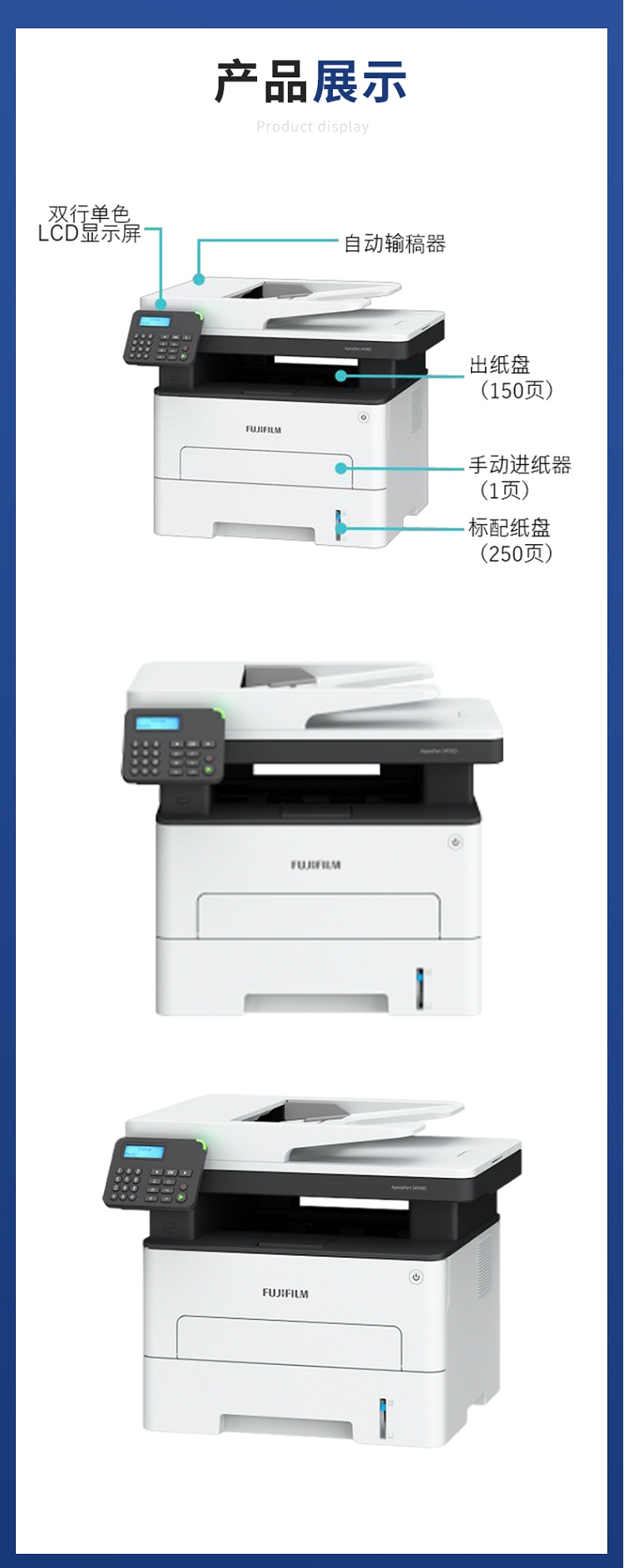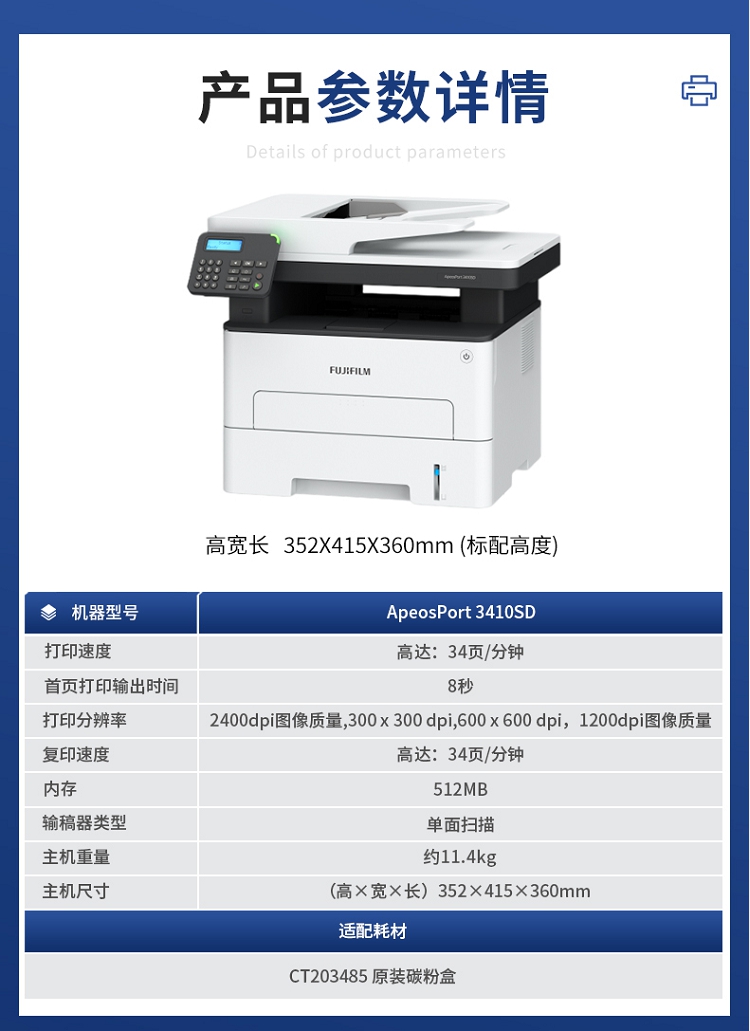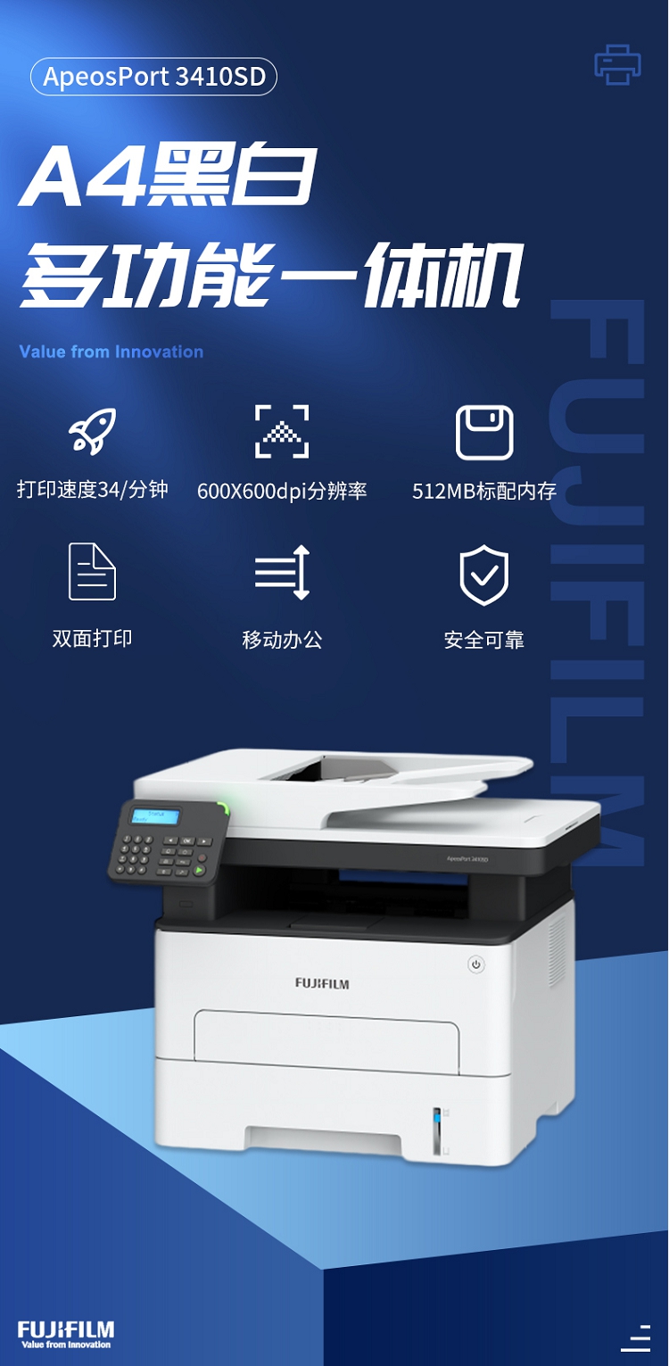 • 商品名称:富士施乐 ApeosPort3410SD 黑白无线双面多功能一体机 M288DW升级款含送货+上门安装调试+上门维修+保修(单位:台)