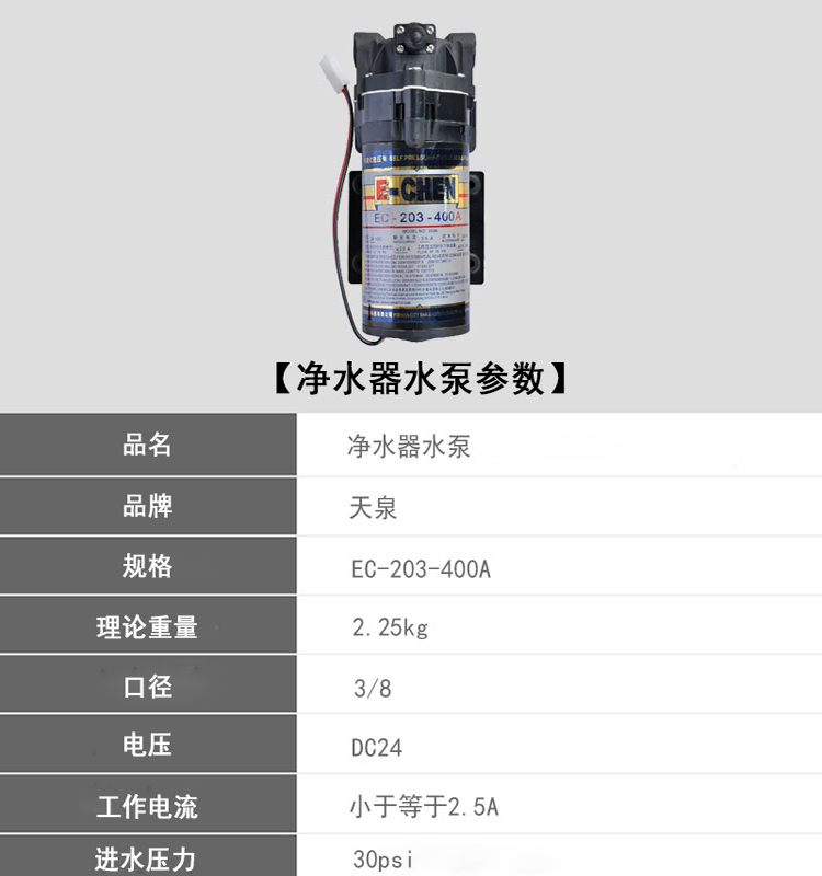 • 商品名称:天泉 EC-203-400A 1个装 净水器水泵 本色(单位:台)