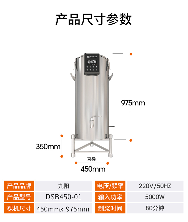 生活电器  > 厨房小家电  > 豆浆机/破壁机/厨房搅拌机  >  九阳/Joyoung  >  九阳(Joyoung) DSB450-01 豆浆机 商用45升免滤大型磨浆机(单位:台)