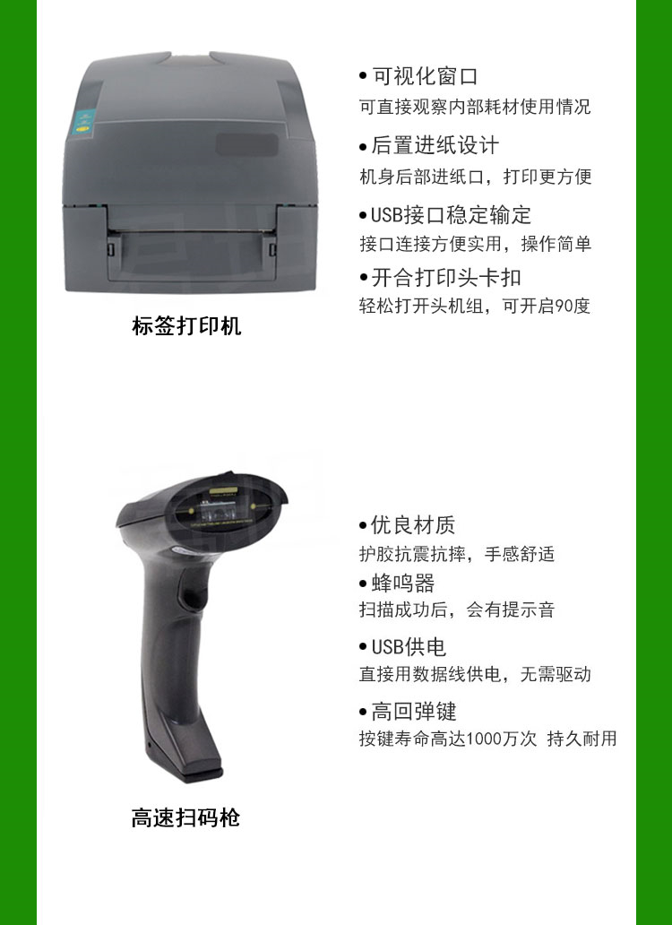 • 商品名称:君坦 JT-LD300 标签打印办公设备套装 三件套(含标签打印机+盘点机+高速扫码枪) 配色(单位:套)