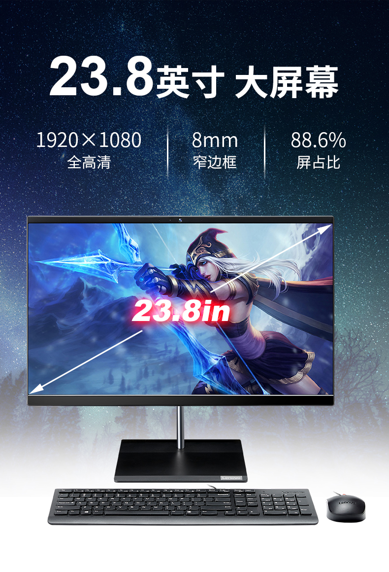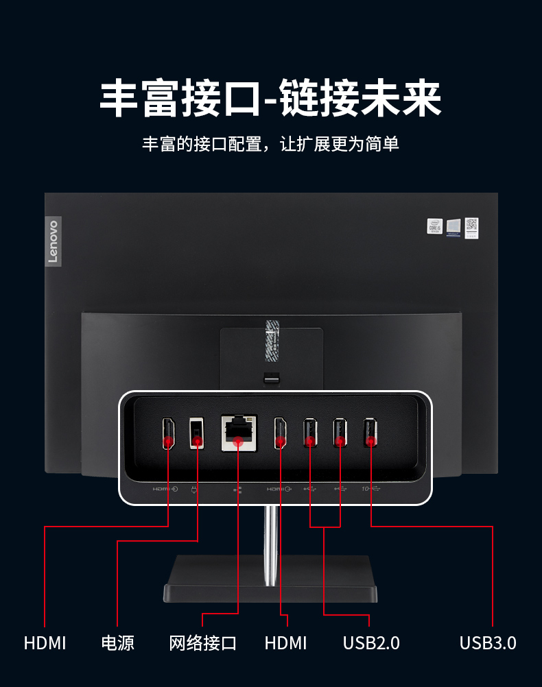 商品名称: 联想/lenovo 扬天S5430 (黑色) 一体机 YC I3-10110U/8G/1T/集成/无光驱/Win10/摄像头/读卡器/音箱麦克/23.8WLED /可俯仰底座/支持壁挂(内置有线键鼠)