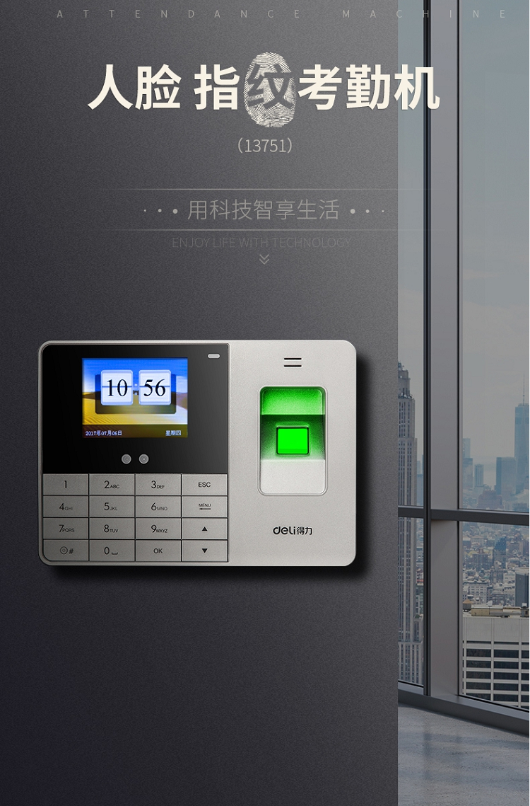 办公设备  > 扫描设备  > 考勤机  >  得力/deli  >  得力/deli 13751 人脸/指纹 考勤 刷卡机 单位:台