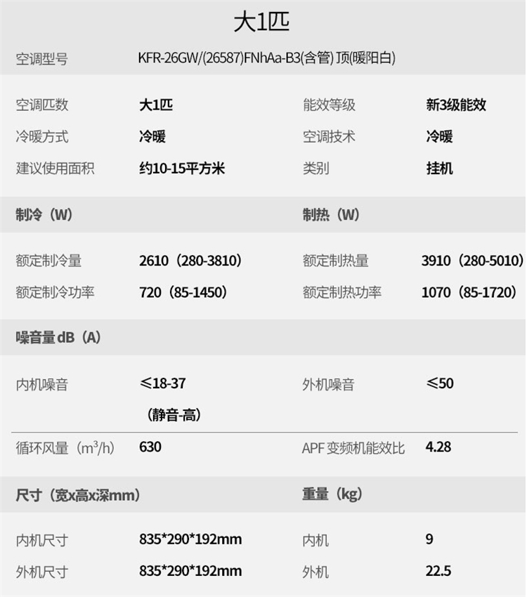 • 商品名称:格力 KFR-26W/FNhXB01-B3 1匹 空调外机 含安装 白色(单位:台)
